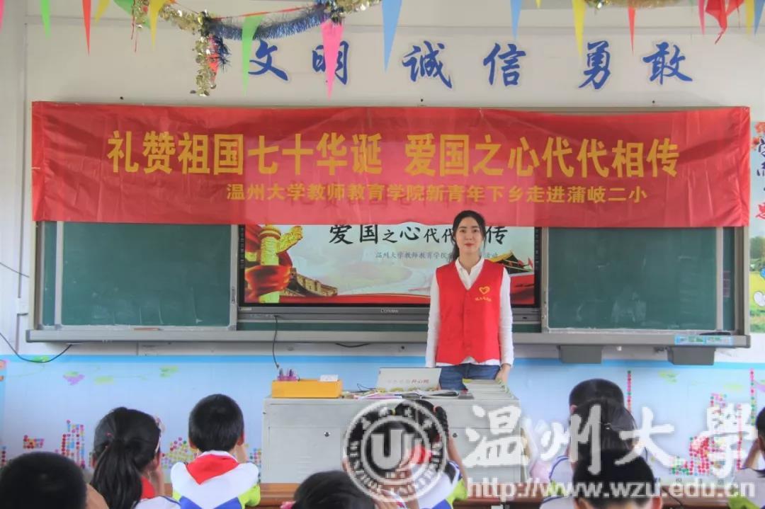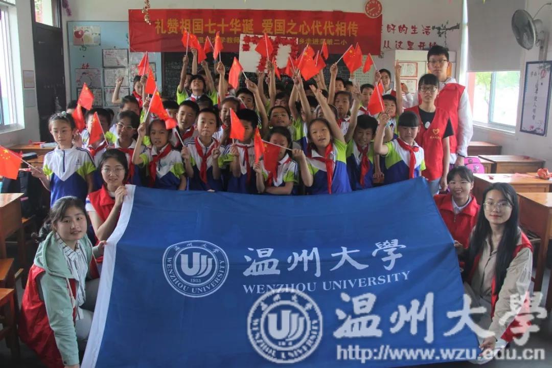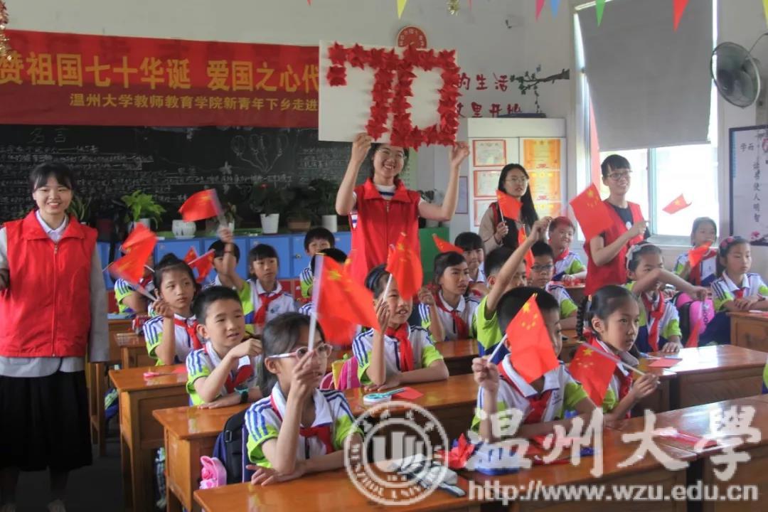致敬新时代,中华人民共和国成立七十周年。5月29日下午,成人色情 教师成人色情 的志愿者们前往乐清市蒲岐二小开展了以"礼赞中华人民共和国成立七十周年,爱国之心代代相传"为主题的新青年下乡活动。志愿者们通过故事宣讲、手工制作、歌曲教授,将爱国情怀传递给孩子们,激发他们的爱国之心和报国之心。