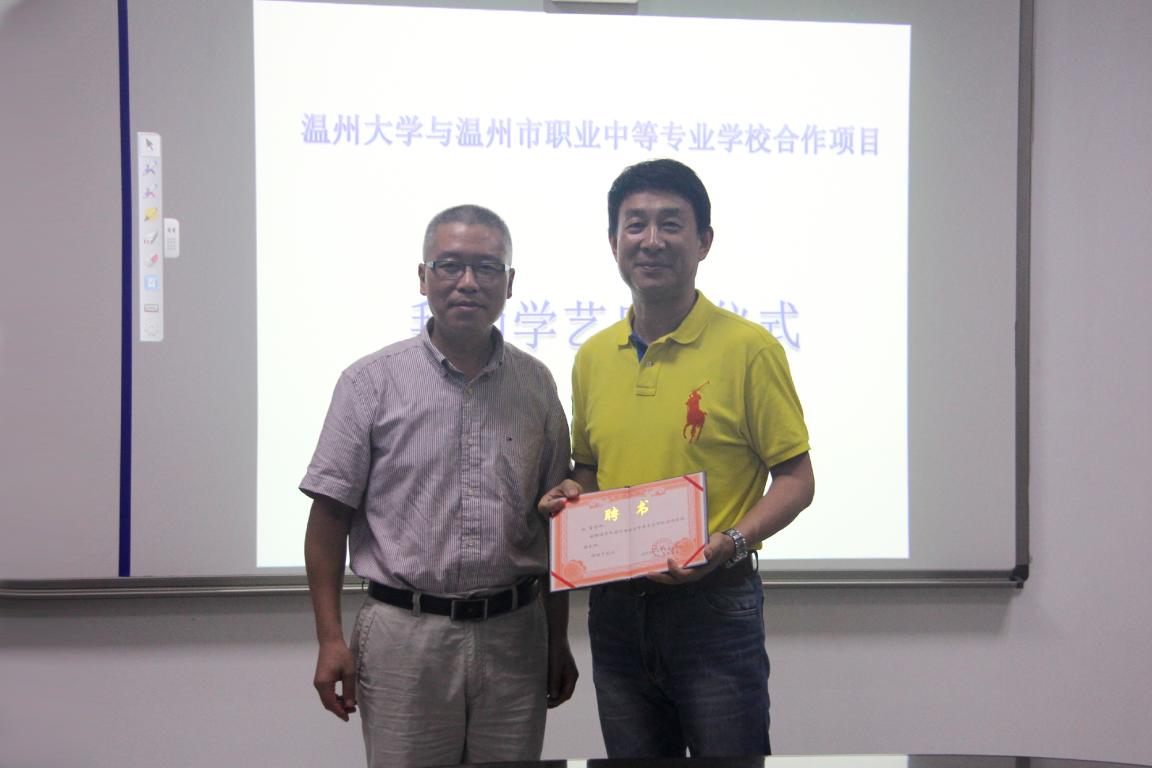 彭小明副院长简单介绍了该项目的由来、内容、意义、完成时间,对各位参与项目研究的老师表示感谢。孙芙蓉院长简单介绍了学院及十三五规划发展的情况,阐述了学前教育专业发展的趋势,并特别提出了学前专业认证的基本要求,明确学前教育发展的方向。温州市职业中等专业学校校长黄威也对这次拜师学艺提出三个建议:(一)希望温大导师对结对学员耐心指导,促进专业发展;(二)希望温大教师成人色情 引领温职专学前教育专业发展,提高学科层次;(三)希望温大帮扶温职专幼师部教学教育管理,加强双方互动、促进管理水平不断提高。在会上,项目总负责人彭小明与温职专校长黄威签订双方办学合作协议书,校长黄威分别给幼师学部管理层结对与骨干教师结对的导师颁发了为期二年的聘书,并进行集体合影。