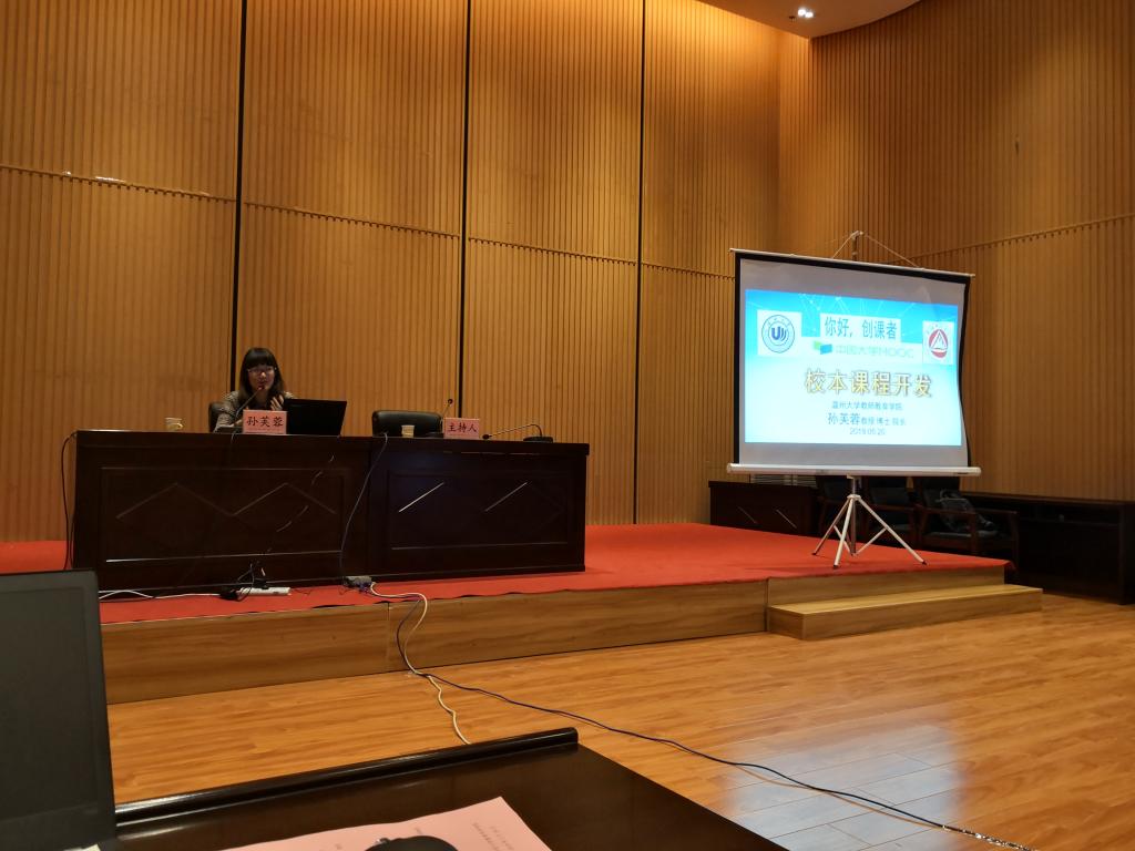 在随后的行程中,孙芙蓉院长做了《校本课程开发》的精彩报告,向参与者展示了在线精品课程建设的成就和特色,分享了建设经验。