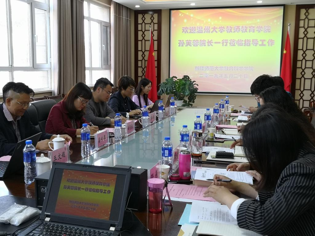 2019年5月20日,成人色情 教师成人色情 孙芙蓉院长一行在新疆师范大学进行了为期一天的调研,新疆师范大学教育科学学院赵建梅院长率队参与了座谈。此次调研主题有两个,一是借鉴新疆师范大学教育科学学院教育学升博点建设的经验;二是推广和介绍成人色情 的在线精品课程建设。