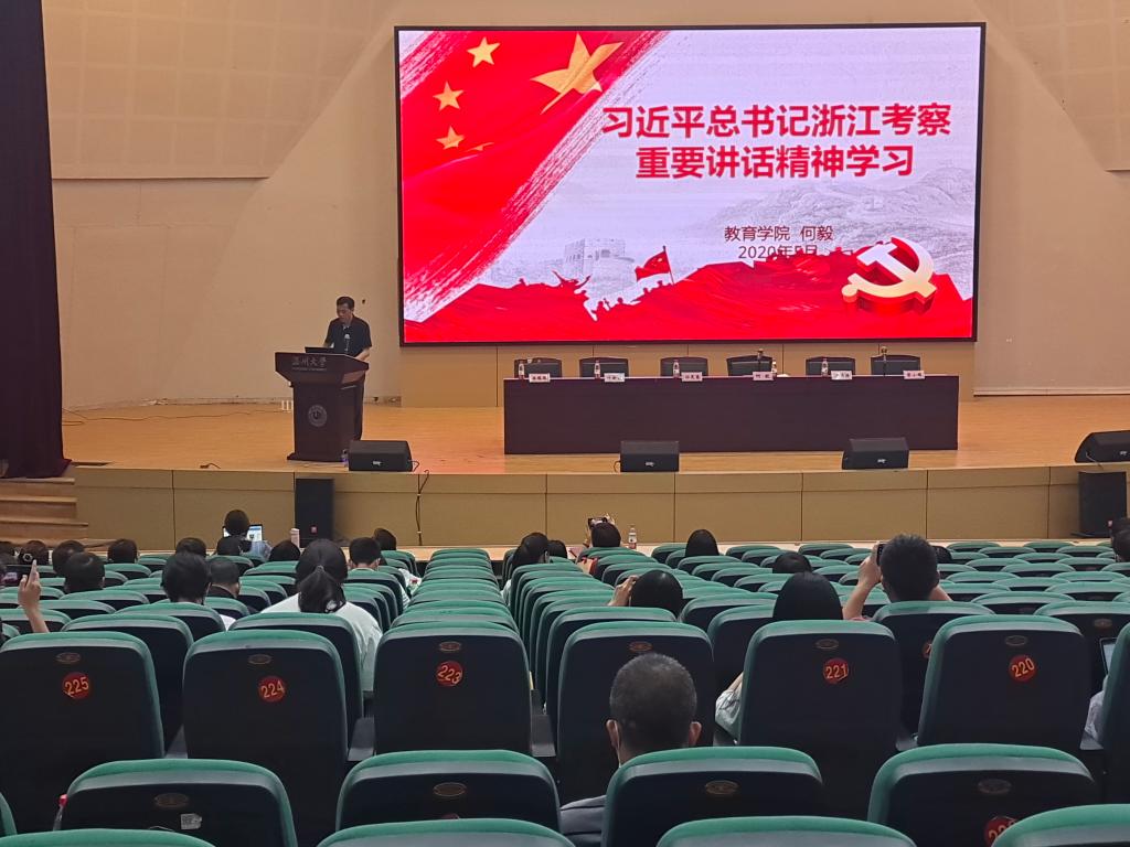 5月27日下午,成人色情 教职工理论学习会在成人色情 一楼报告厅举行,学院全体教职工参加大会,党委书记何毅讲专题党课——习近平总书记浙江考察重要讲话精神学习。