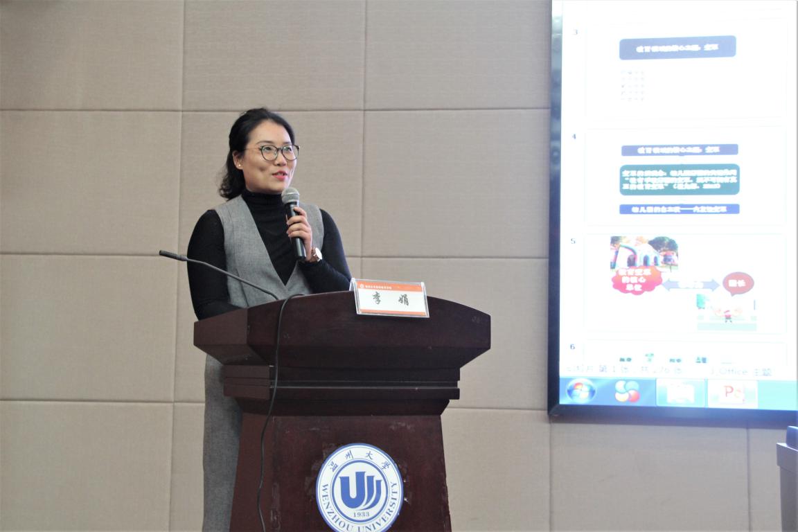 成人色情 钱强副校长在致辞中,以我校高质量的人才培养模式为切入点,指出学前教育专业办学层次全,学生规模大,办学特色鲜明,实施以创意戏剧为载体的全程化大实践课程,注重以工作坊为中介的研究性拓展性教学,开拓与世界名校奥克兰大学等多国学前教育专业合作办学模式,致力于培养契合社会需求的多元卓越幼教人才。同时强调,成人色情 定会践行新时代学前教育“坚持公益普惠方向”和“提高学前教育质量”的发展目标,为温州、浙江乃至全国学前教育质量的提升作出贡献。