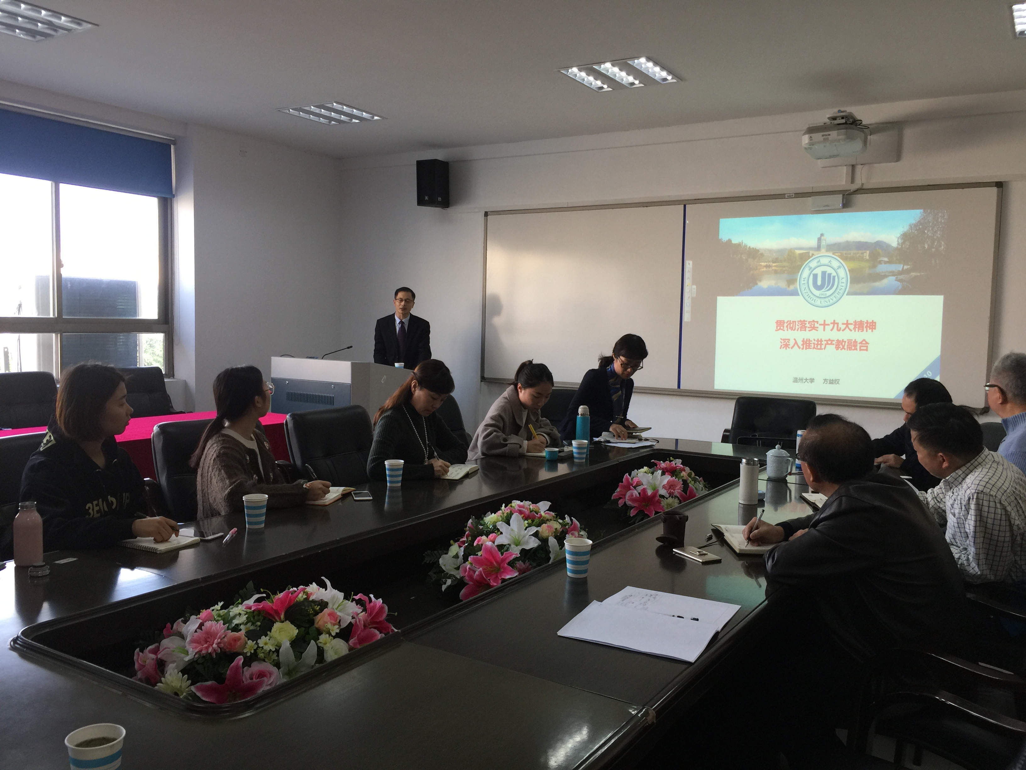 作十九大精神辅导报告,学院领导以及师生代表参加了本次会议。