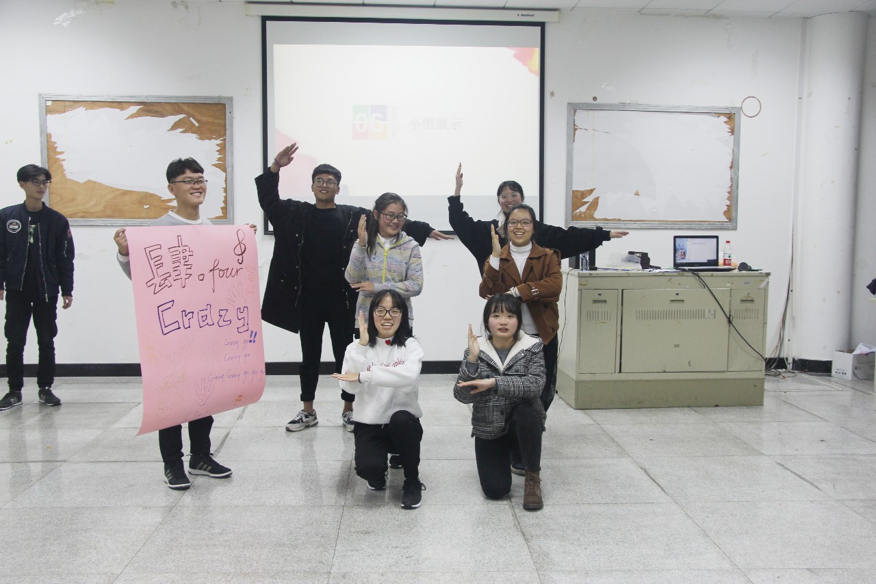 最后一轮的游戏“小组展示”,成员们按组别领取海报和画笔,在海报上分别画上各队的队徽、队名、队歌。经过十几分钟的准备之后,各队依次上台展示各队的队型、队歌、口号。通过制作海报,成员们团结一致,集思广益、密切合作,充分发挥各自的优势,锻炼了克服困难的团队意识;培养计划、组织、协调能力;增强成员间的相互信任和理解。