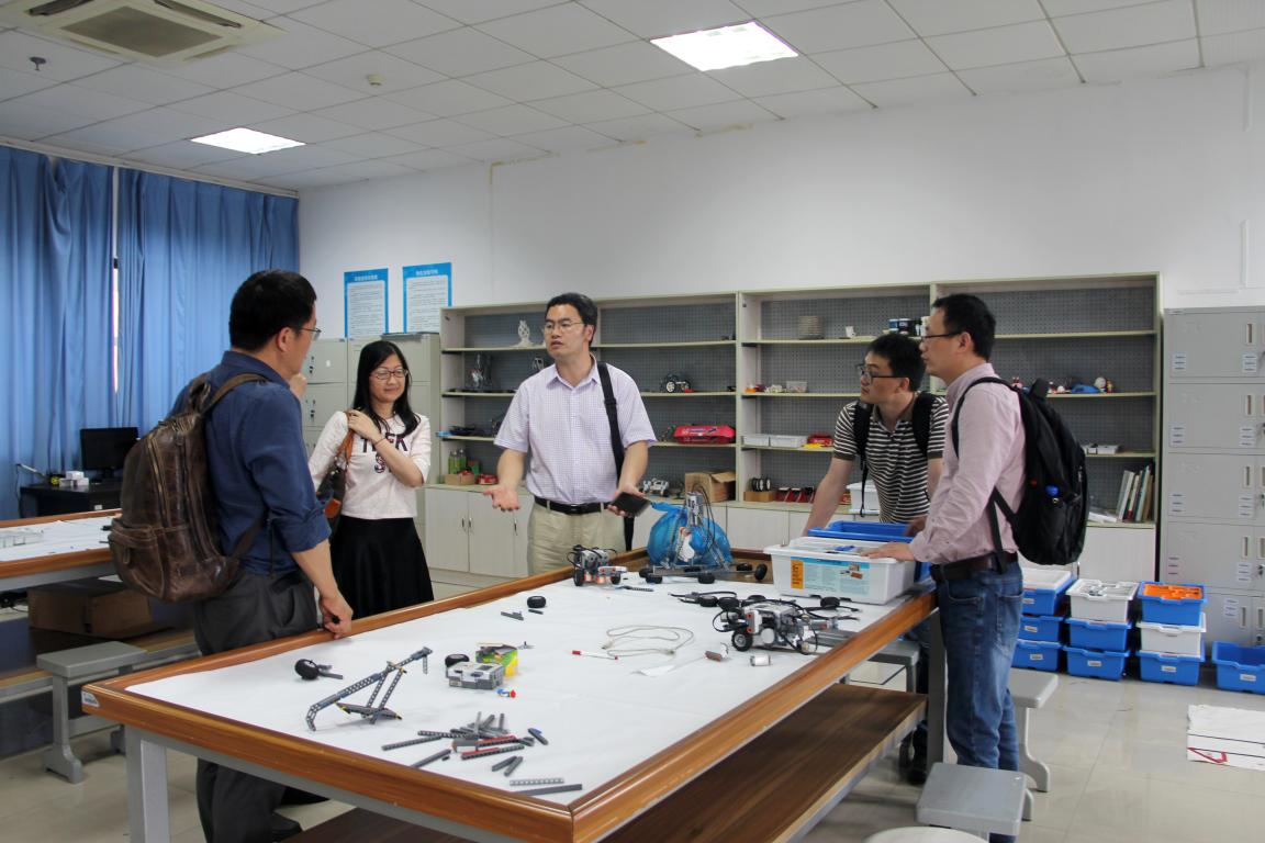 在交流完之后,王永固副院长一行还参观了成人色情 实验中心、温大创客空间,实验中心主任李小志、副主任杨健以及张新立、叶爱敏老师热情接待了来访客人。王永固副院长一行主要参观了虚拟实验室、学生工作坊实验室、教育机器人创客空间、温大创客空间等实验室,他们对实验中心宽敞的场地、先进的仪器设备、丰硕的教研成果予以很高的评价,同时,双方就师范类实训实验室的建设情况进行了深度交流与探讨。