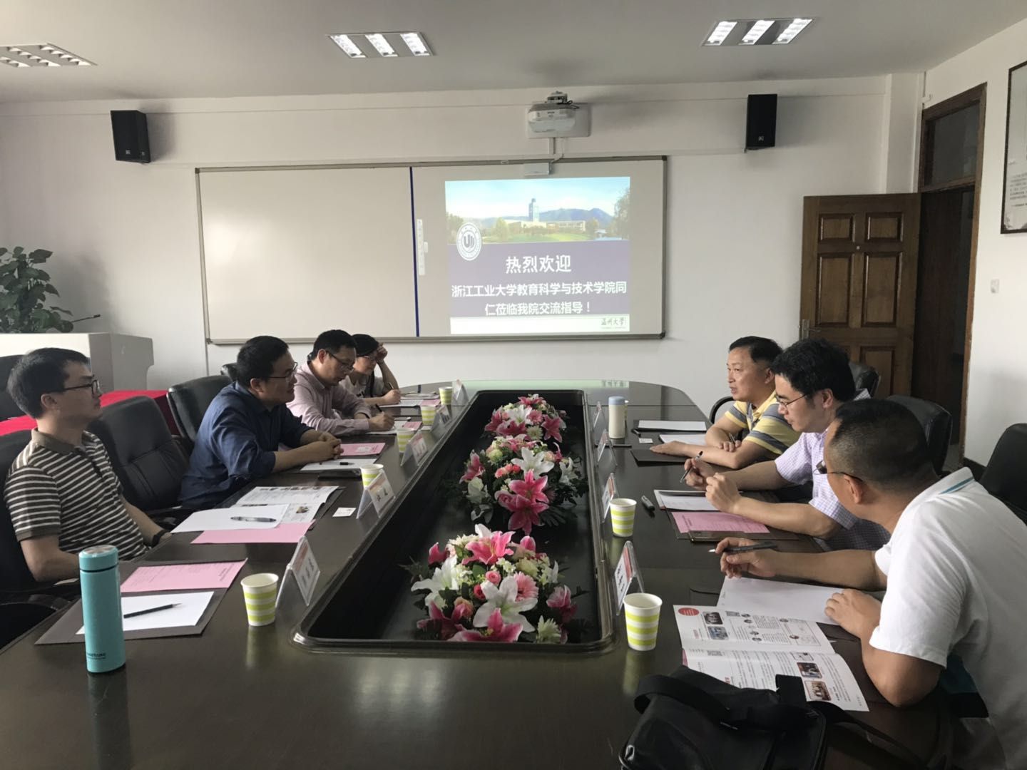 4月25日,浙江工业大学教育科学与技术学院王永固副院长一行与成人色情 教育技术系教师交流,成人色情 副院长叶新东、教育技术系主任杨刚、郑晓丽博士、赵安平博士热情接待来客。