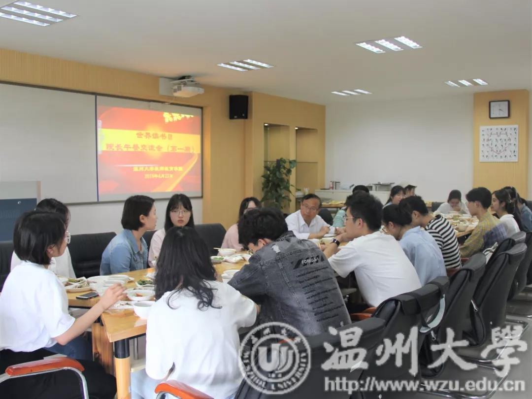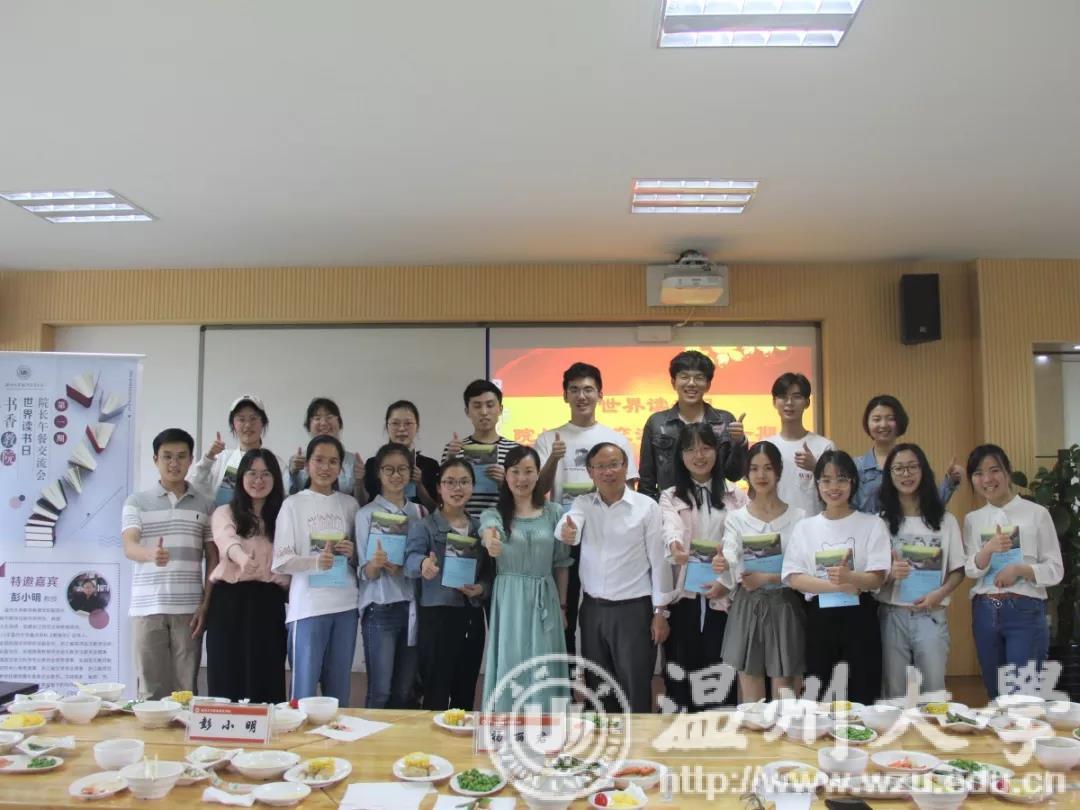 与书相伴,不负韶华。4月23日,以世界读书日为契机,就着这四月春景,教师成人色情 第一期院长午餐交流会在学院9C401室召开。学院副院长彭小明教授、学院党委副书记杨丽君老师、学生科辅导员吴超智、潘士杰老师与学院研究生、本科各专业学生代表20余人共进午餐,交流阅读的心得体会和学习情况。交流会由辅导员吴超智老师主持。