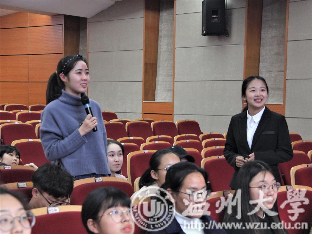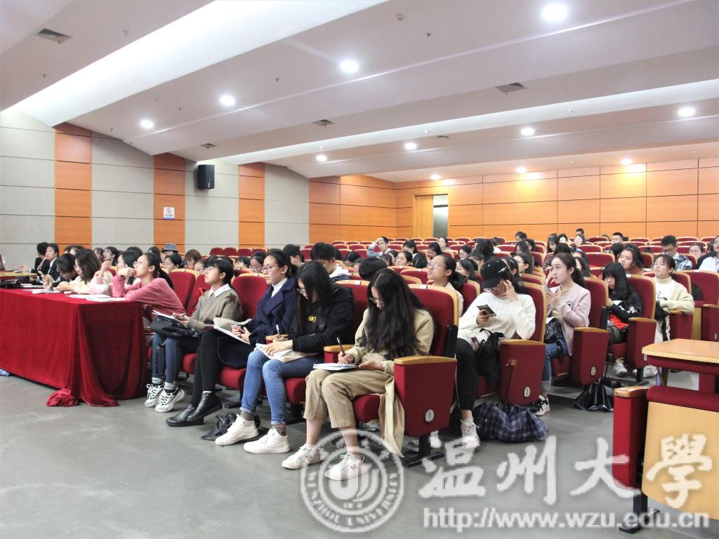为提升团学成员的礼仪修养,提高其综合素质,2018年11月16日晚,成人色情 教师成人色情 团员骨干培训之雅系列《走进礼仪与口才的世界》讲座于南校雁山厅举行。本次讲座,由校公关部成员为同学们介绍与大学生礼仪、演讲、口才相关的知识和技巧。