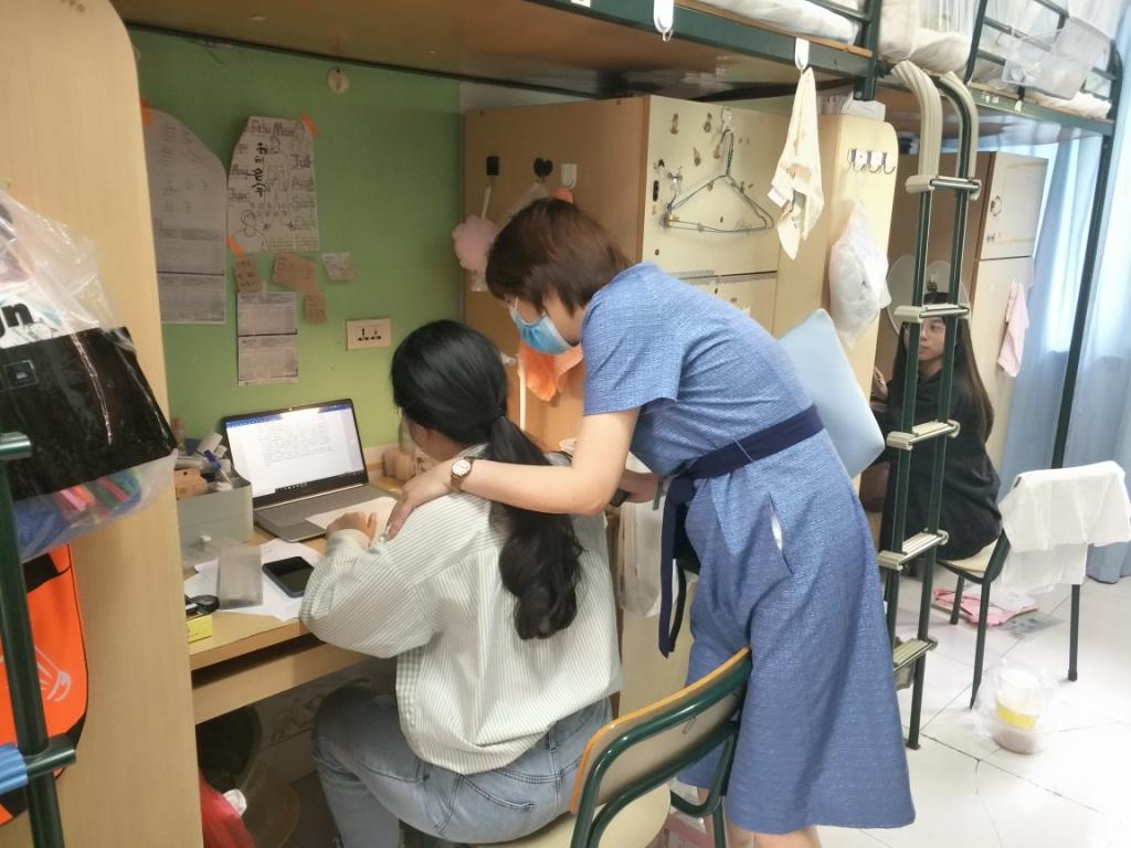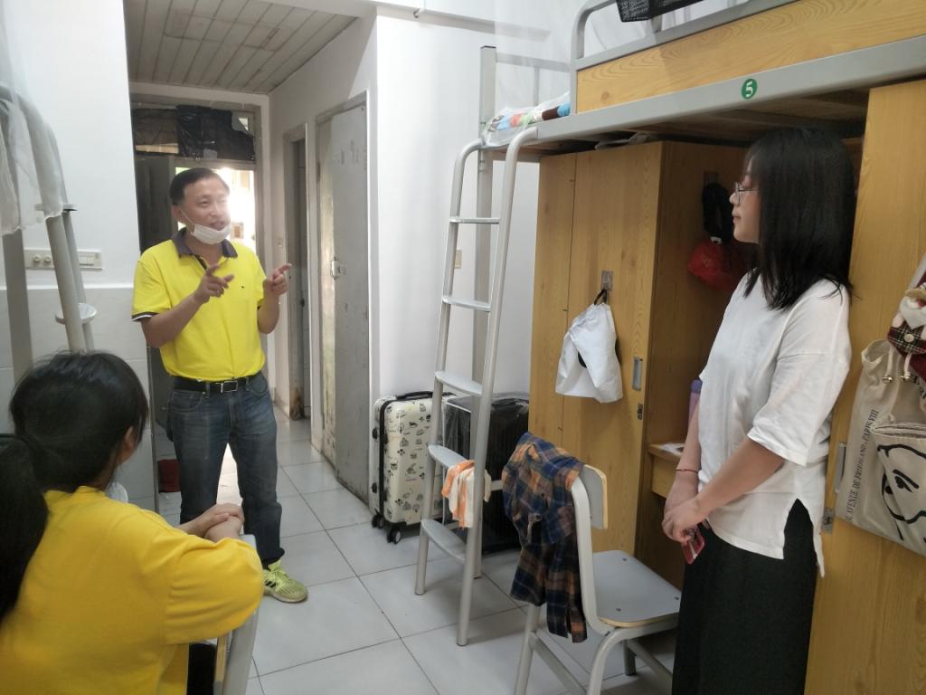 为关怀成人色情 学子身心健康,增强疫情防控意识,5月18日下午,成人色情 院长孙芙蓉、党委书记何毅、副院长叶新东、副院长王志强、副院长林琛琛、党委副书记彭小媚等领导在学工办各老师的陪同下,分别走访学院学生宿舍,实地查看了寝室隔离的各项举措,第一时间为学生们送上学院的殷切关怀和温暖问候。