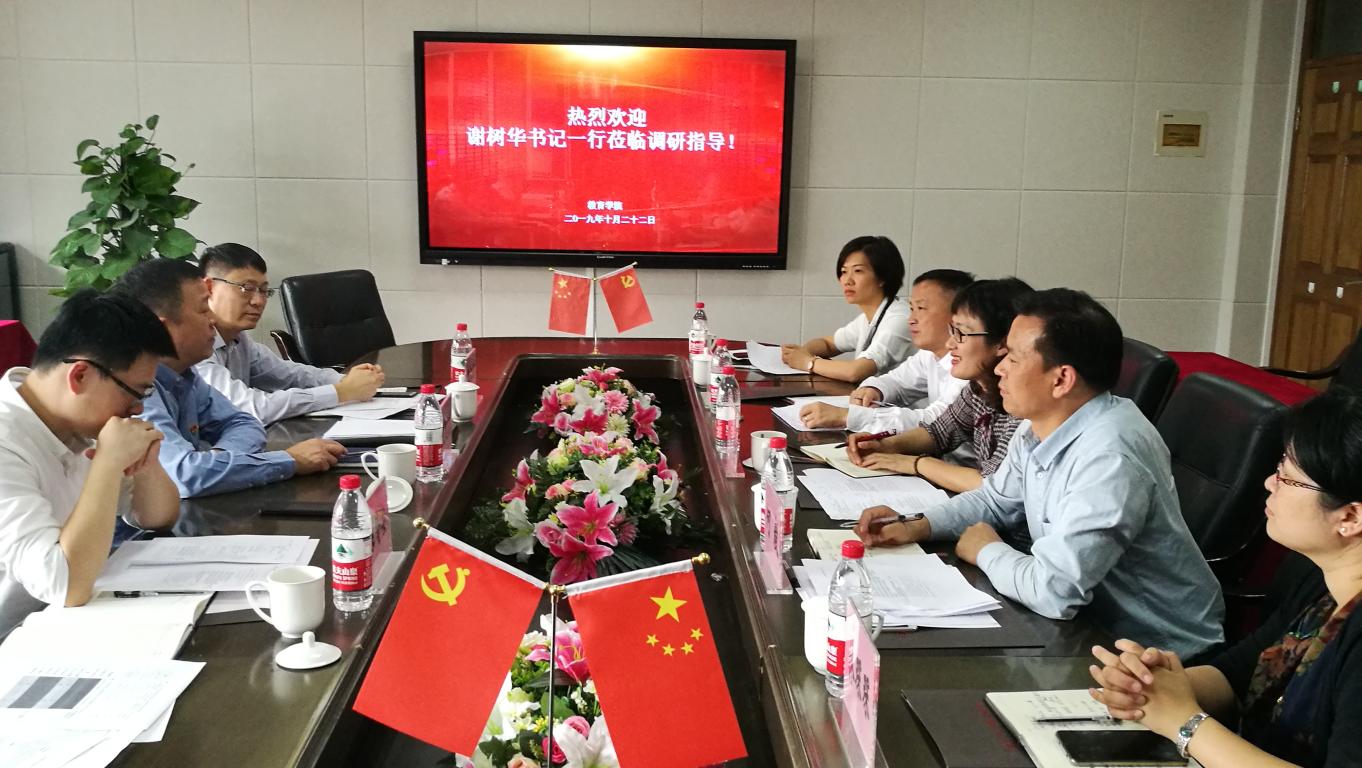 2019年10月22日下午,校党委书记谢树华、校办主任蔡联群、校办督办科科长陈赞安一行来成人色情 开展申博工作调研。学院院长孙芙蓉、党委书记何毅、副院长叶新东、王志强、林琛琛、党委副书记彭小媚参加了此次会议。