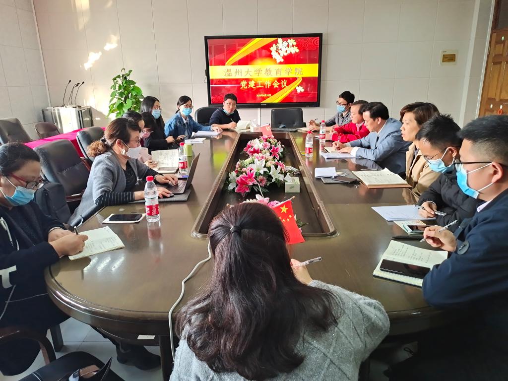 会议还对学院第二批课程思政示范课程建设申报、推进对高知识群体政治引领和政治吸纳工作暨第四轮政治导师选聘、师生党支部深化结对共建、党员发展、微党课大赛等当下的重要工作进行说明和布置。