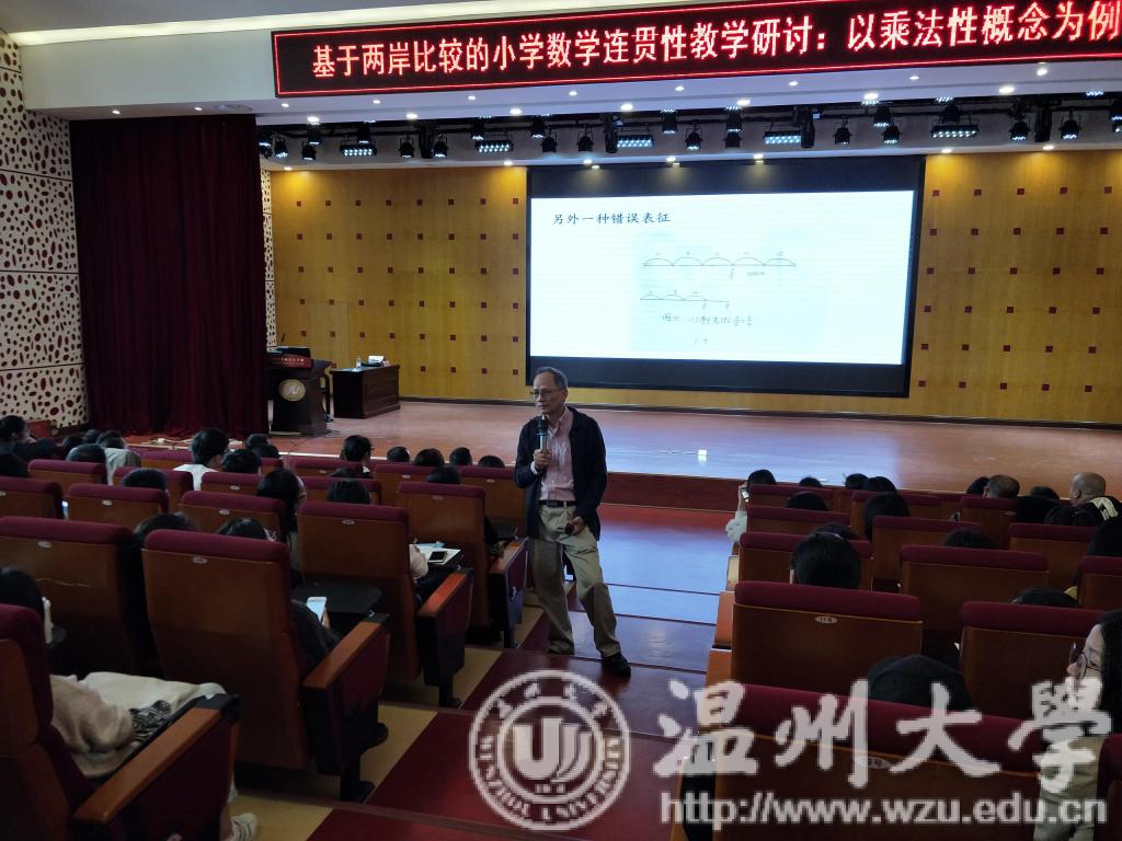 10月24日下午,台湾国立嘉义大学刘祥通教授在成人色情 附属小学报告厅就《基于儿童思维,拓展学生数学能力》这一议题开设讲座。本次讲座为基于两岸比较的小学数学连贯性教学探讨的一个环节。成人色情 17级小教系的全体同学聆听了本次讲座。