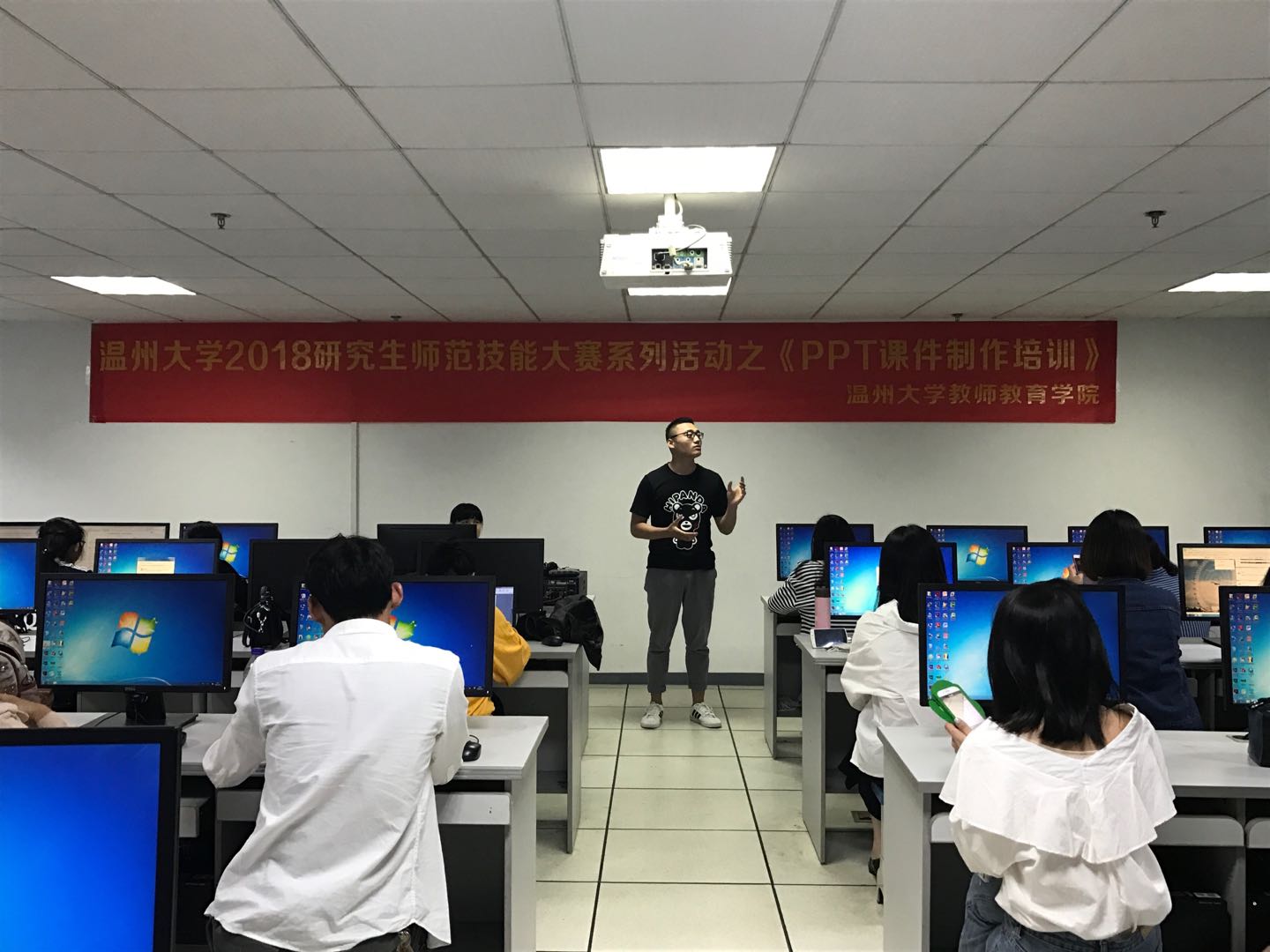 为鼓励学院研究生广泛参与,提高参赛选手的水平,教师成人色情 为广大参赛同学提供了一系列赛前培训。首场“PPT课件制作培训”于11日下午6时30分在北校区6号楼举办。