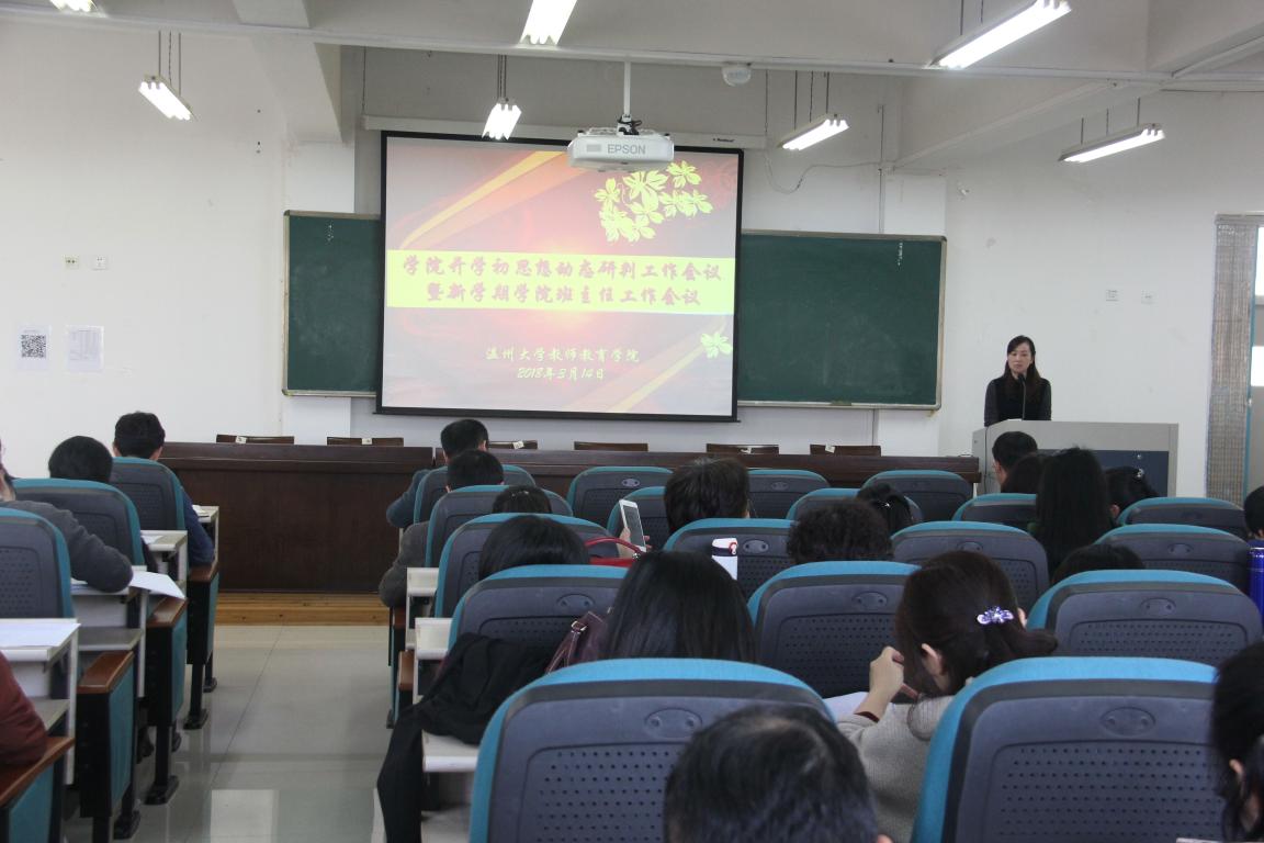 为了进一步落实好本学期的学院管理工作,提高教学质量,增进班主任之间的交流,3月14日下午成人色情 于南9C-301召开了学院开学初思想动态研判工作会议暨新期学院班主任工作会议。学院党委书记杨立淮、党委副书记杨丽君等院领导,以及各年级班主任等成员参加会议,本次会议由杨丽君副书记主持。