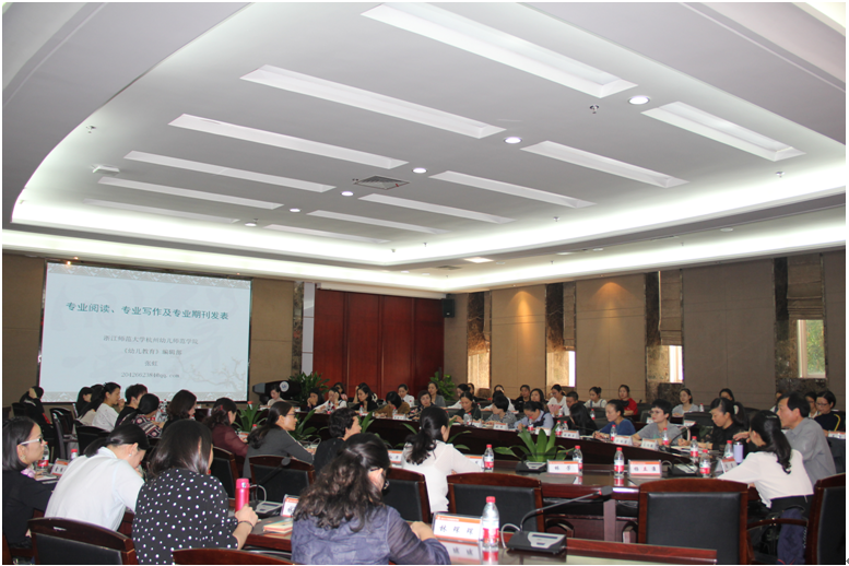 2017年10月28日下午,温州市教育局基教处陈苗副处长,鹿城区、龙湾区幼教干部应红华、陈芸芸和王茜茜,教师成人色情 学前教育系书记陈旭微,副系主任杨婧、林琛琛,林炎琴、戴聪聪、曾国等教师十余人,部分本科生、研究生及温州地区十二个县市区共四十所省一级幼儿园园长齐聚成人色情 岩松堂白鹿厅,聆听《幼儿教育》杂志主编张虹带来的题为“专业阅读、专业写作及专业期刊发表”的学术盛宴。