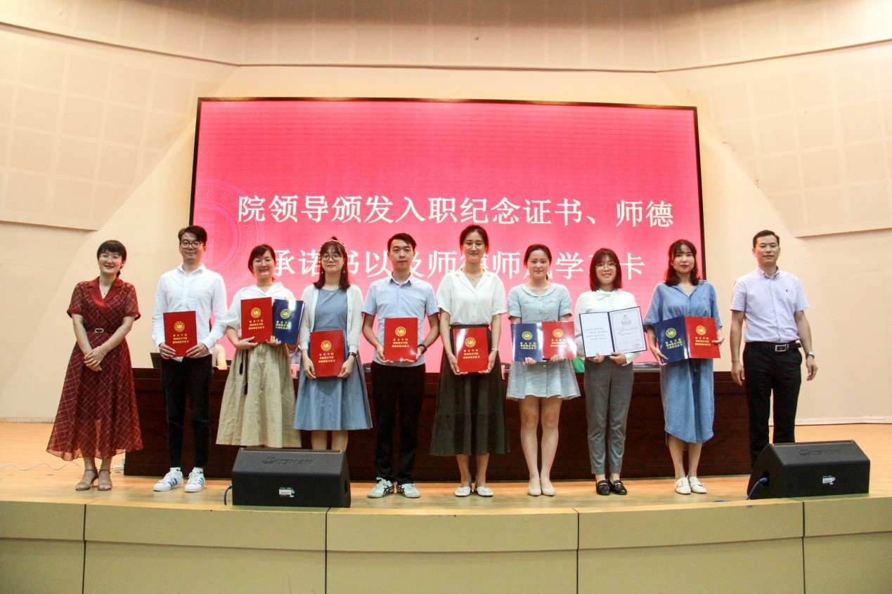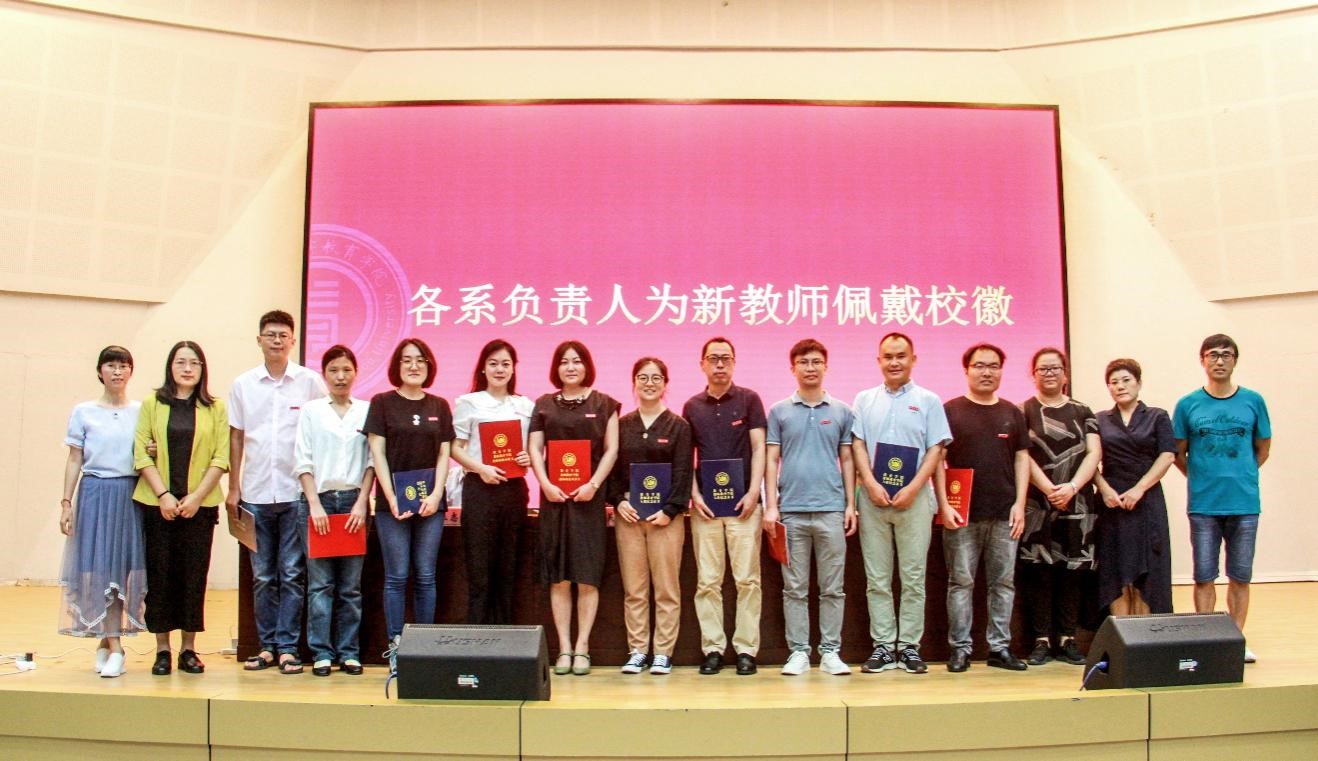 会议首先进行了简单、隆重的新进教职员工入职仪式。何毅书记对新教师逐一进行介绍,院领导为19位新教师颁发了入职纪念证书、师德承诺书以及师德师风学习卡,各系负责人为新教师佩戴校徽,以此表达学院对新入职老师的热烈欢迎和殷切期望。