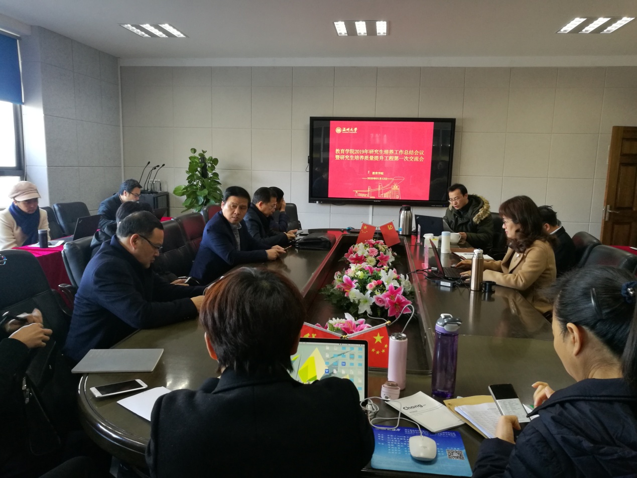 为深入了解成人色情 研究生培养工作情况,切实提高成人色情 研究生培养质量,2020年1月12日8时,成人色情 于成人色情 A410会议室举行了2019年研究生培养工作会议暨研究生培养质量提升工程第一次交流会。担任本院研究生课程的教师参加本次会议,由副院长王志强主持。