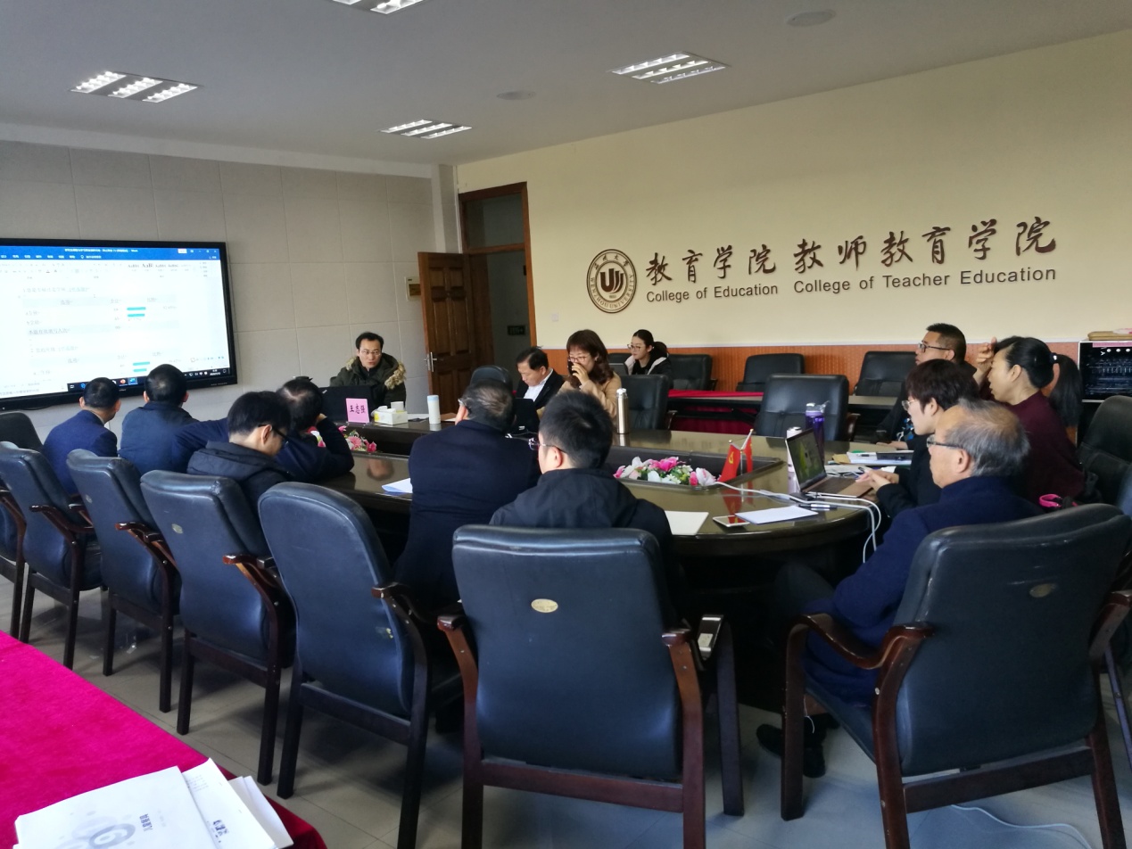 会议开始,王院长首先展示了针对学院研究生所作的问卷调查并对数据结果进行解释。目前研究生培养工作中存在课程数量过多、科目不同但内容相似、缺乏文献管理、学术写作课程及实证工具学习等问题,王院长表示,为切实提高工作的实效性和针对性,培养方案应有所修改。接着王院长展示了由他个人整理成稿的《高等教育学》课程大纲,明确规定了学生在本课程中应完成的任务,例如课程作业、评分准则、得分标准等及教师应做的工作,课程大纲清晰明了,细节到位。王院长建议按照明朗清晰的课程大纲进行教学能够切实提高学生素养,课程教师可以根据个人课程完成对应课程教学大纲,特别是课程实施过程的撰写应该具体到课前准备、课中实施、课后评价的标准。