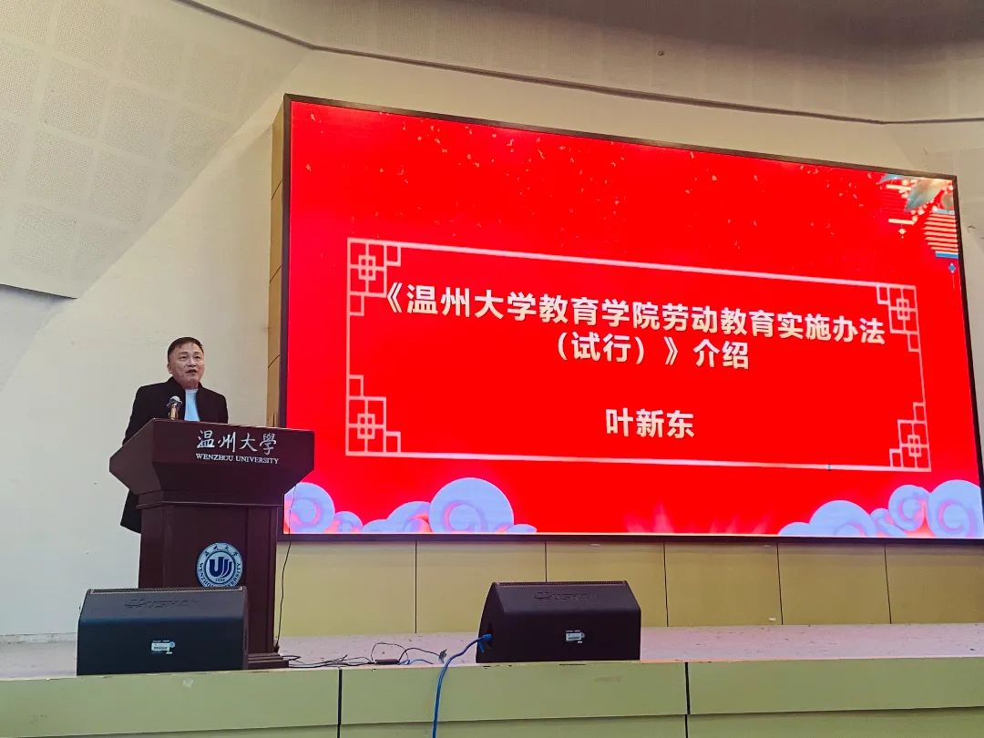 学院副院长叶新东详细解读了《成人色情 劳动教育实施办法(试行)》。学院劳动教育实施办法突出劳动教育“三融入”,即将日常生活劳动、专业实践劳动和劳动理论课程三个部分有机衔接,通过明确劳动教育内容,建设理论与实践相结合的劳动教育必修课程,实施课内与课外一体化的劳动教育实践体系,汇聚校内与校外结合的劳动教育实践资源,从而引导大学生树立正确的劳动观念,提升劳动能力,涵养劳动精神,全面推进大学生劳动教育,努力构建“五育并举” 的人才培养体系。