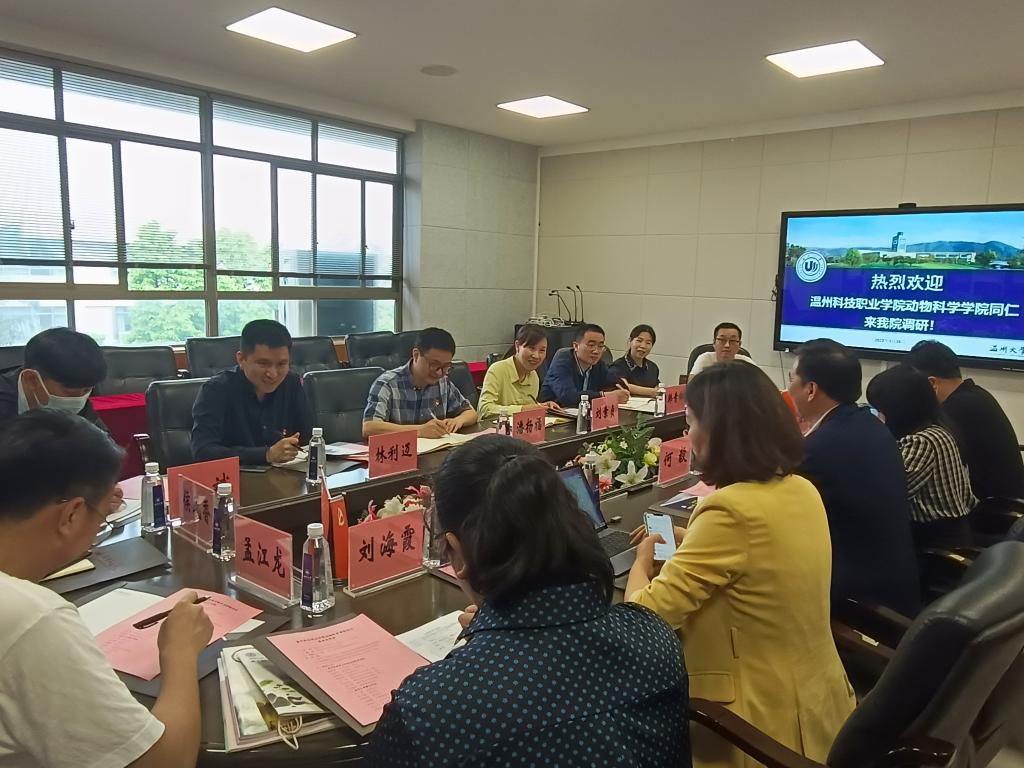 5月26日上午,温州科技职业学院动物科学学院潘杨福院长、刘素贞执行院长一行8人来成人色情 调研全国党建标杆院系创建情况。学院党委书记何毅、副书记彭小媚、副书记章园园、小教系书记刘海霞、党建办工作人员等参加了调研交流会。