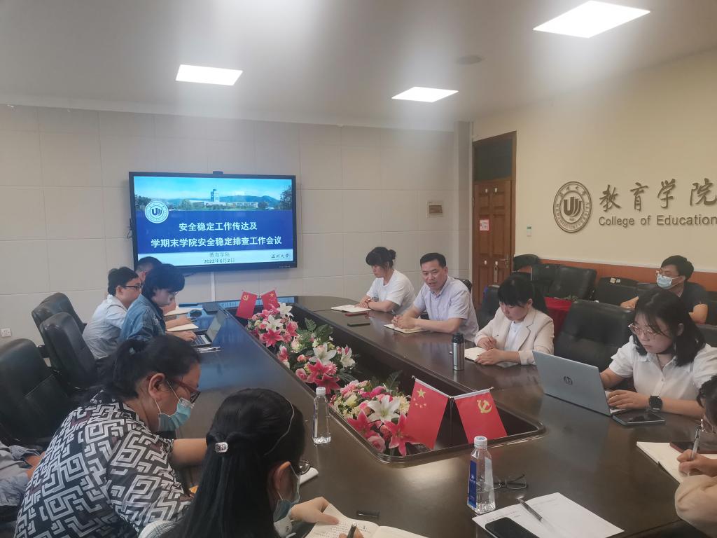 2022年6月2日上午,成人色情 召开学期末安全风险隐患排查专题工作会议,传达学校安全工作专项会议精神,研究部署学院学期末安全稳定隐患风险排查事宜。学院党委书记何毅、副书记章园园,各师生党支部书记、各科室负责人及全体辅导员参加会议,会议由章园园副书记主持。