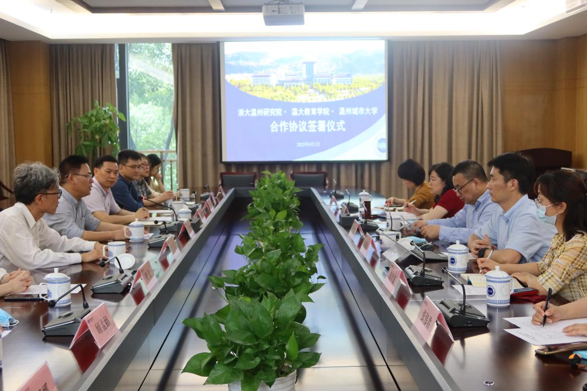 6月1日下午,经成人色情 相关研究团队与浙大温州研究院和温州城市大学多次沟通,《积极老龄化视阈下“老有所学、老有所为”教育体系构建的研究》项目合作三方协议在温州城市大学签订。温州城市大学党委书记、校长陈红辉,副校长胡剑波,浙大温州研究院常务副院长金志江、副院长叶志前、院长助理李巧世,成人色情 教育党委书记何毅、成人色情 教授徐速及浙大温研院相关老师和温州城市大学相关学院负责人参加仪式。