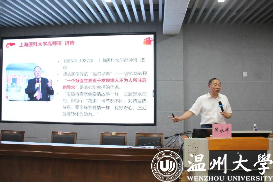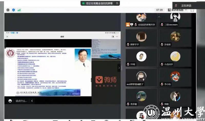 《形势与政策》课是高校学生思想政治教育的重要内容,是高校思想政治理论课的重要组成,是帮助大学生正确认识新时代国内外形势,深刻领会党和国家事业取得的历史性成就、发生的历史性变革、面临的历史性机遇和挑战的核心课程。为全面贯彻落实习近平总书记关于劳动教育重要论述精神,深入推进新时代劳动教育实践,有力落实“五育并举”理念,2022年6月9日晚上,成人色情 联合外国语学院采用线上和线下相结合的形式开展以“弘扬劳模精神,坚守平凡岗位”为主题的《形势与政策》课暨劳动教育专题讲座。全国劳模、温州医科大学附属第一医院肝病诊治中心主任陈永平教授担任本次讲座的主讲人,学院党委副书记章园园、学工办辅导员孟江龙一同出席了本场报告。