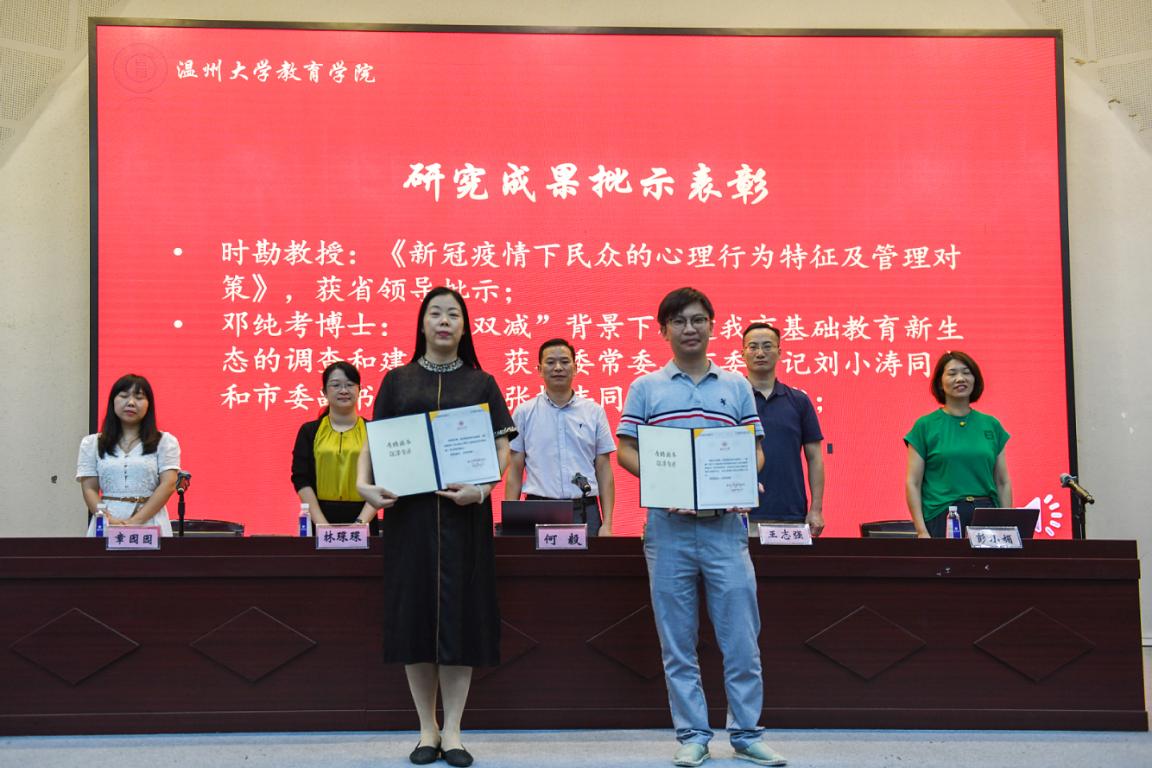 表彰优秀,鼓励先进。在欢快的音乐中,学院领导为2022年上半年至今在科研立项、研究获奖、学生科创、基层组织建设等方面取得荣誉的优秀个人和先进集体进行表彰颁奖。会议还对尚在省厅推荐评审阶段的教学研究、课程建设等方面成果进行了展示。
