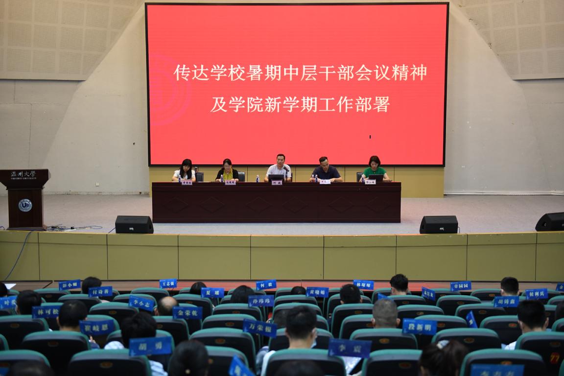 本次会议分三项议程。首先,全院教职员工为新教师举行欢迎仪式;接着,表彰荣誉先进;最后,会议传达学校暑期中层干部会议精神及部署学院新学期工作。