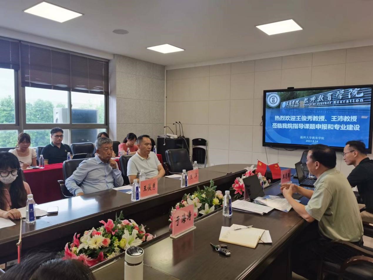 9月14日下午,中国社会科学院社会学研究所社会心理学研究中心主任王俊秀教授和华东师范大学紫江学者王沛教授应邀莅临成人色情 就心理学学科专业建设及科研课题申报事宜进行指导交流。学院党委何毅书记、王志强副院长,心理学系于海涛主任、系支部书记杜健、系副主任邹智敏及心理系师生参与会议。