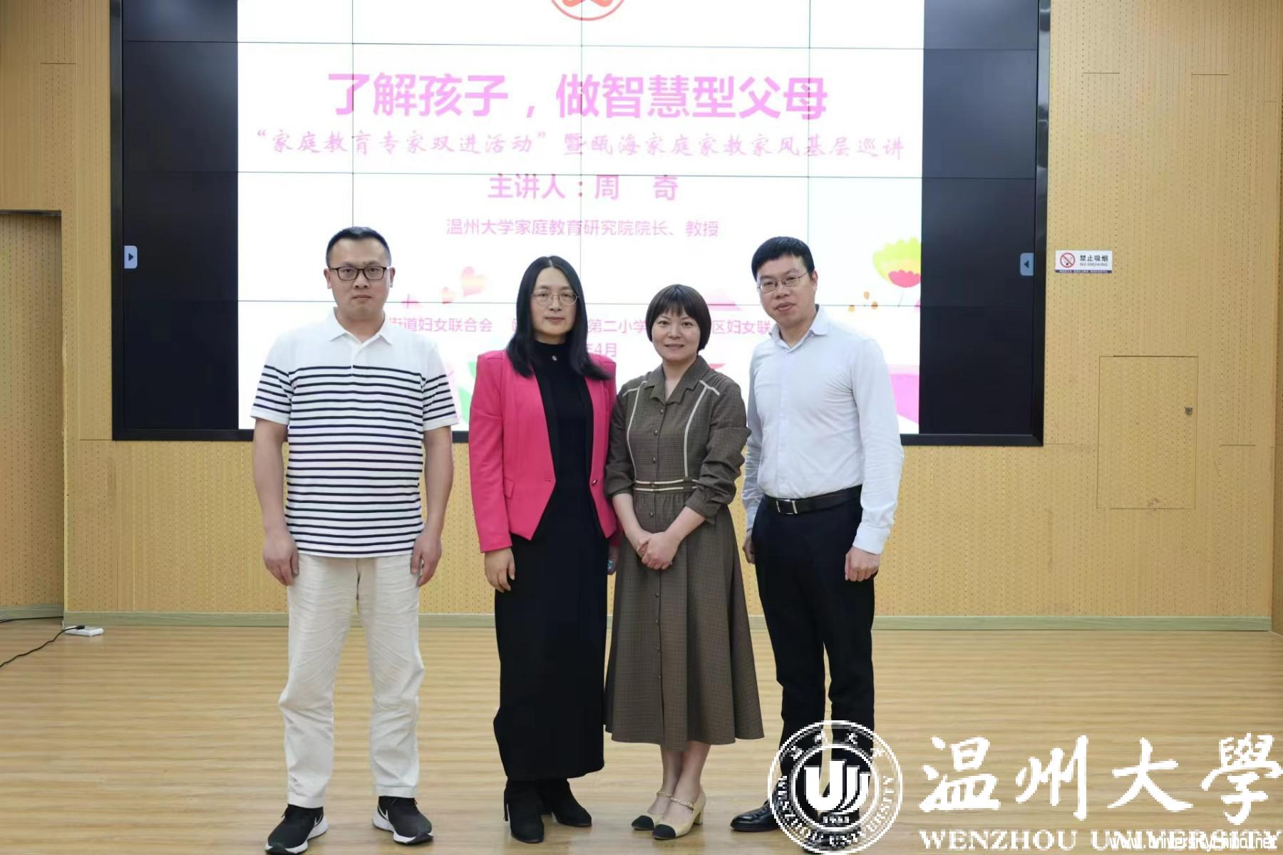 苏霍姆林斯基说:“最完备的教育是学校与家庭的结合。”学校家庭相互合作,协同育人,才能共促孩子成长。近日,温州市妇联推出家庭教育服务进社区进学校“双进”活动暨瓯海家庭家教家风基层巡讲,成人色情 教育系支部书记、成人色情 家庭教育研究院院长、成人色情 家庭家教家风讲师团团长、温州市家庭教育学会副会长,浙江省妇女儿童发展智库专家,浙江省家庭教育讲师团成员全国家庭工作先进个人周奇教授来到瞿溪第二小学,为四年级的家长们作《了解孩子,做智慧型父母》的主题讲座。