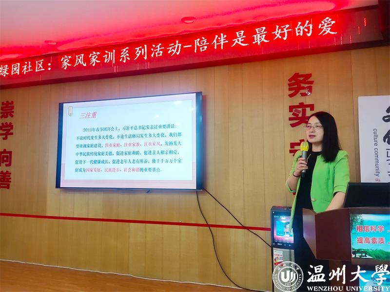 “孩子最渴望的、最好的礼物其实就是家人的陪伴。或许是爸爸与孩子嬉戏打闹,或许是与妈妈的一起做手工,或许是晚上父母坐在身边讲故事,或许是和全家人一起外出野餐……”近日,温州市家庭教育服务进社区家风家教系列活动进文化礼堂走进蒲鞋市街道绿园社区,成人色情 教育系支部书记、成人色情 家庭教育研究院院长、成人色情 家庭家教家风讲师团团长、浙江省妇女儿童发展智库专家、温州市家庭教育学会副会长周奇教授为家长们开展《陪伴是最好的爱》家庭教育公开指导课。
