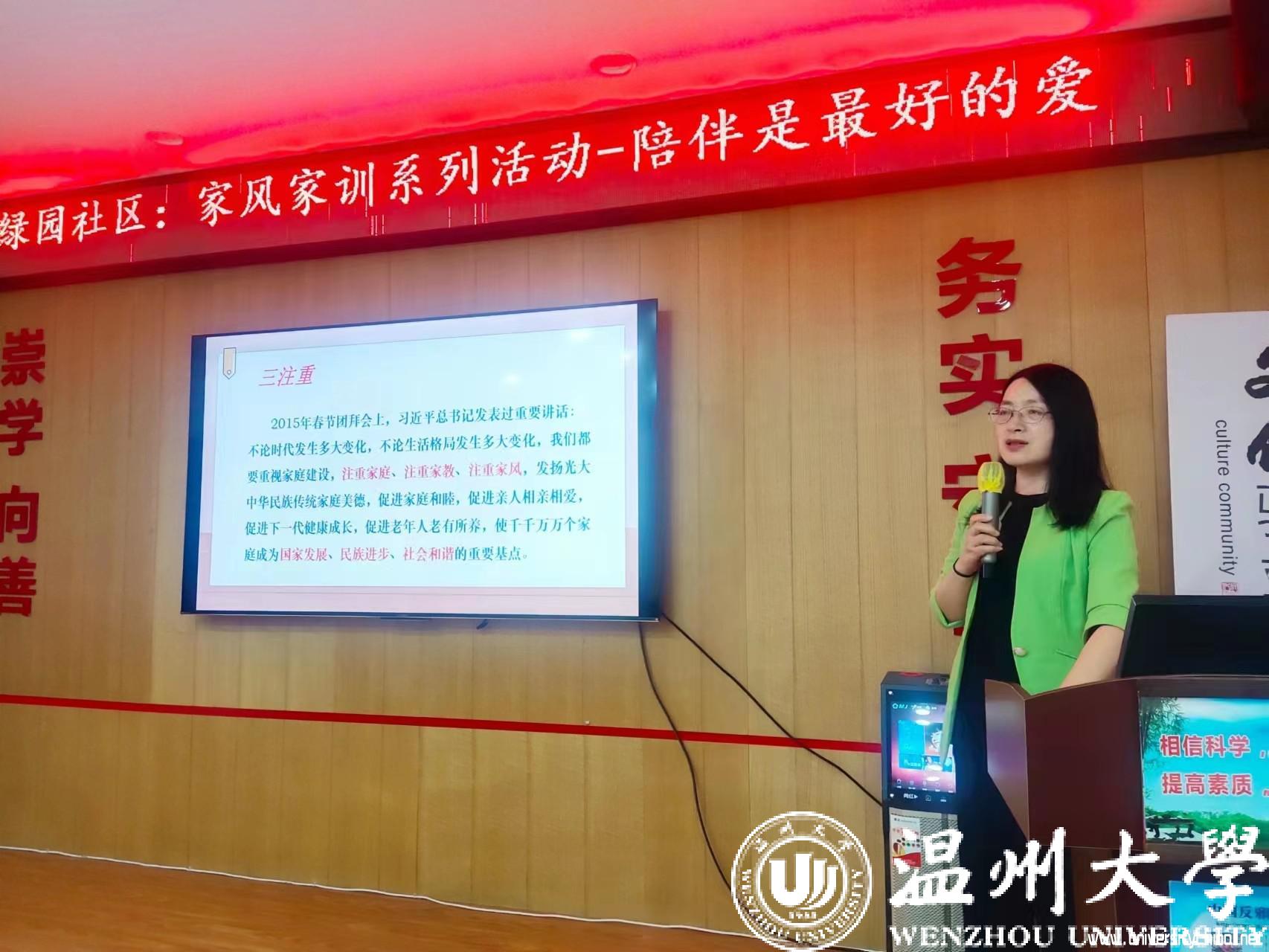 “孩子最渴望的、最好的礼物其实就是家人的陪伴。或许是爸爸与孩子嬉戏打闹,或许是与妈妈的一起做手工,或许是晚上父母坐在身边讲故事,或许是和全家人一起外出野餐……”近日,温州市家庭教育服务进社区家风家教系列活动进文化礼堂走进蒲鞋市街道绿园社区,成人色情 教育系支部书记、成人色情 家庭教育研究院院长、成人色情 家庭家教家风讲师团团长、浙江省妇女儿童发展智库专家、温州市家庭教育学会副会长周奇教授为家长们开展《陪伴是最好的爱》家庭教育公开指导课。