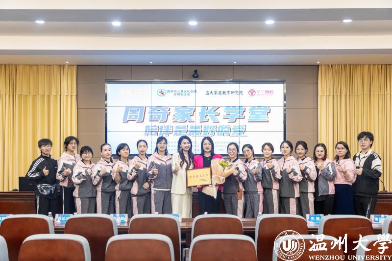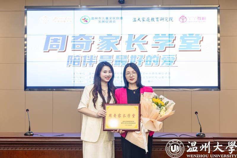 活动现场举行了授牌仪式。成人色情 家庭教育研究院院长周奇教授向温州童创会瑞安分会会长、蓓蕾幼童&丫丫舞校创始人杨晓琴授予“周奇家长学堂”基地。