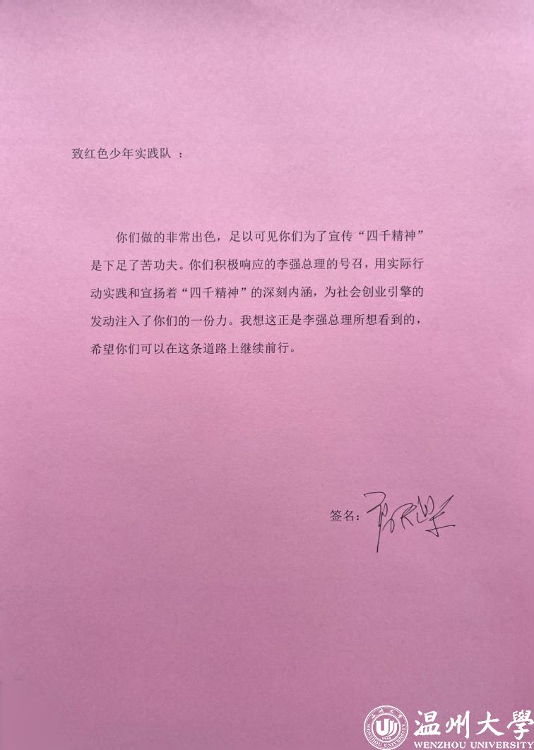 红色少年实践队的实践经历和成果深深地打动了高天乐先生,他对该实践队弘扬“四千精神”的行动表示支持并给予了非常大的鼓舞:“你们做的非常出色,足以可见你们为了宣传“四千精神”是下足了苦功夫。你们积极响应的李强总理的号召,用实际行动实践和宣扬着“四千精神”的深刻内涵,为社会创业引擎的发动注入了你们的一份力。希望你们可以在这条道路上继续前行。”