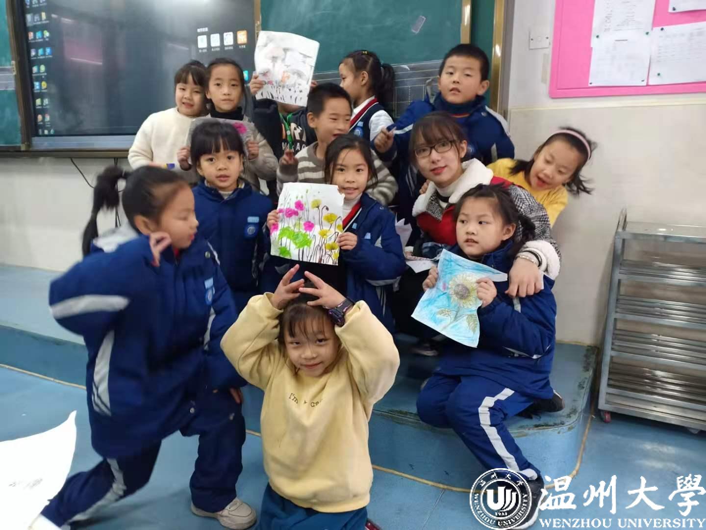 “哎呦呦,快拔掉,疼得小熊双脚跳。”从大一开始,陈怡佳便经常去小学、社区进行儿童绘本教育。陈怡佳成长于乐清的一个小村,她说:“小时候,我认识了一位知心姐姐,她与我写信、打电话,给我讲述远方的故事,陪伴我成长。从那时起,我就决定长大以后也要成为这样一位帮助小朋友的人。进入大学后,我加入学校志愿服务队,常常去小学、社区,带小朋友读绘本、演绘本。在我看来,这是与小朋友交流的很好途径,我可以将一些生活常识、道理融入其中,在趣味中传播给小朋友,成为他们童年的‘知心姐姐’。”