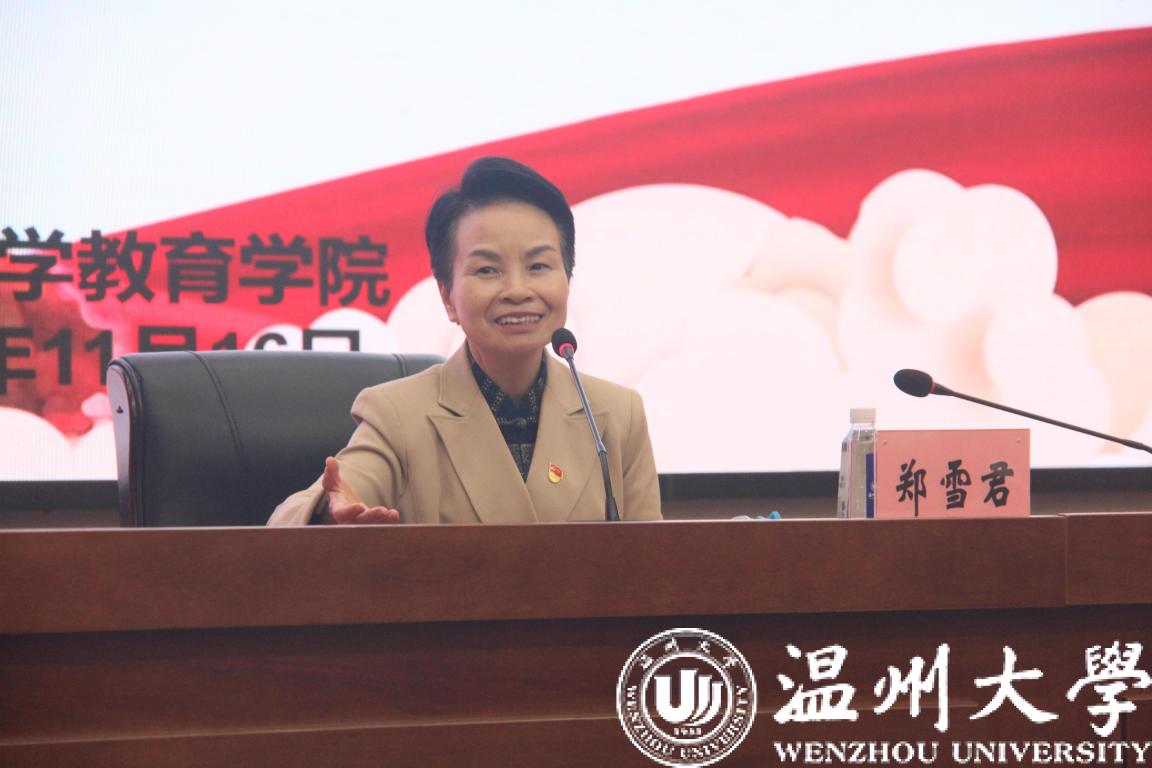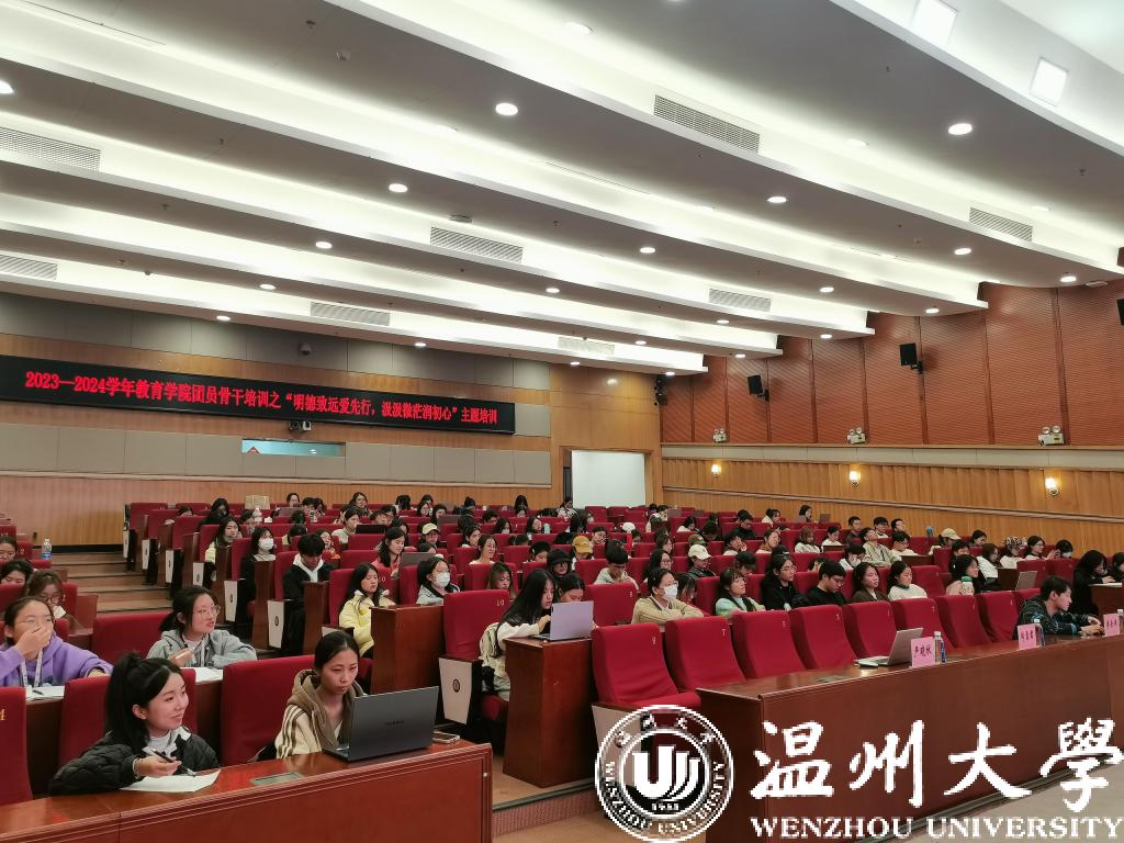11月16日晚,温大成人色情 在育英图书馆二楼报告厅开展主题为“明德致远爱先行,汲汲微茫润初心”的团干培训活动,特邀全国劳模、浙江省雪君理论宣讲名师工作室负责人郑雪君主讲《让心中的太阳升起》的励志课。全院团学骨干近270人参与。