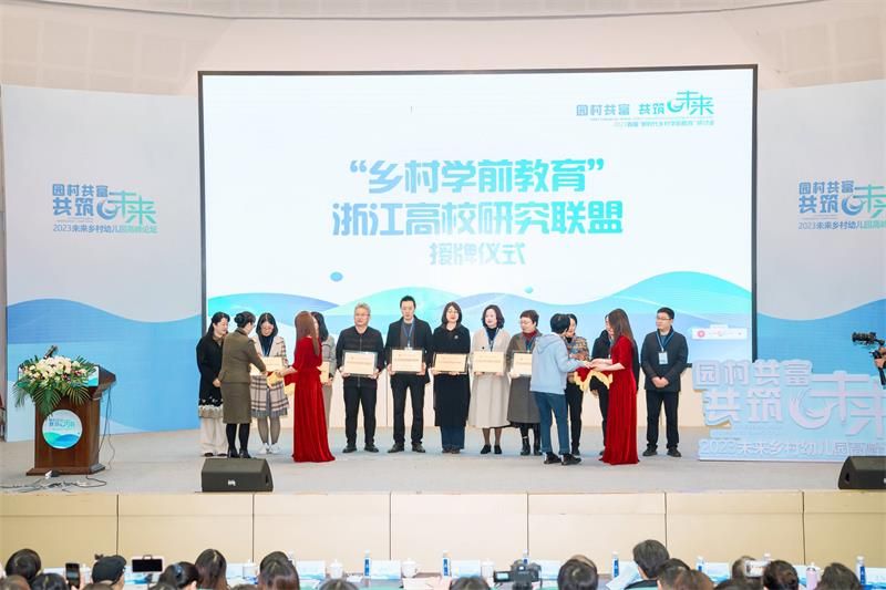 研讨会开幕式上,成人色情 学前教育系作为召集单位,携手浙江省各高校学前教育系牵头组建浙江省乡村学前教育研究联盟,赵降英副书记和何春玲副处长共同为联盟授牌。