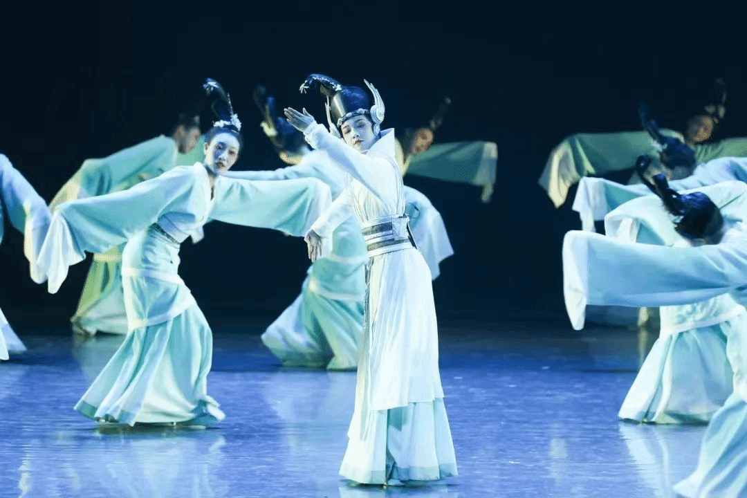 据介绍,该作品为温州文化艺术发展基金2022年度资助项目。受温州“朔门古港”发掘启发,以文化回望为主题,采用女子群舞的形式,通过演绎陶瓷人(龙泉青瓷)与AI人对望的场景,表现了人类文明具有生生不息、源远流长的连续性。现场,舞蹈团的一位同学说,在舞蹈中,他们演绎的是古,也是今。“以‘AI人’与‘陶瓷人’所代表的现代文明与古代文明的双重意象构织起的舞蹈叙事,在宣扬传统文化传承的同时,也是以我们大学生的视角表达了在AI元年,对文化创新与传承的思考。”