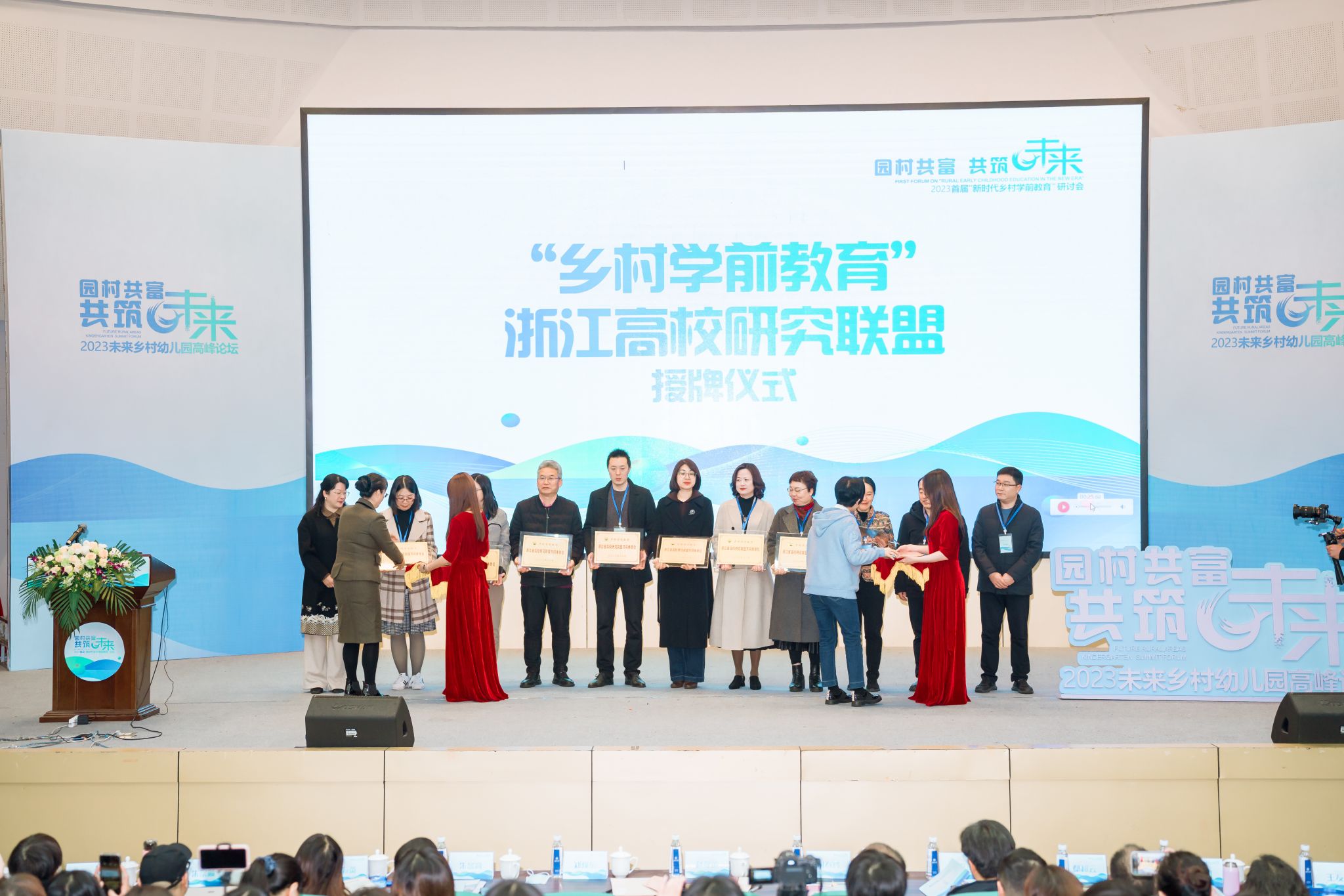 研讨会开幕式上,成人色情 学前教育系作为召集单位,携手浙江省各高校学前教育系牵头组建浙江省乡村学前教育研究联盟,赵降英和何春玲共同为联盟授牌。