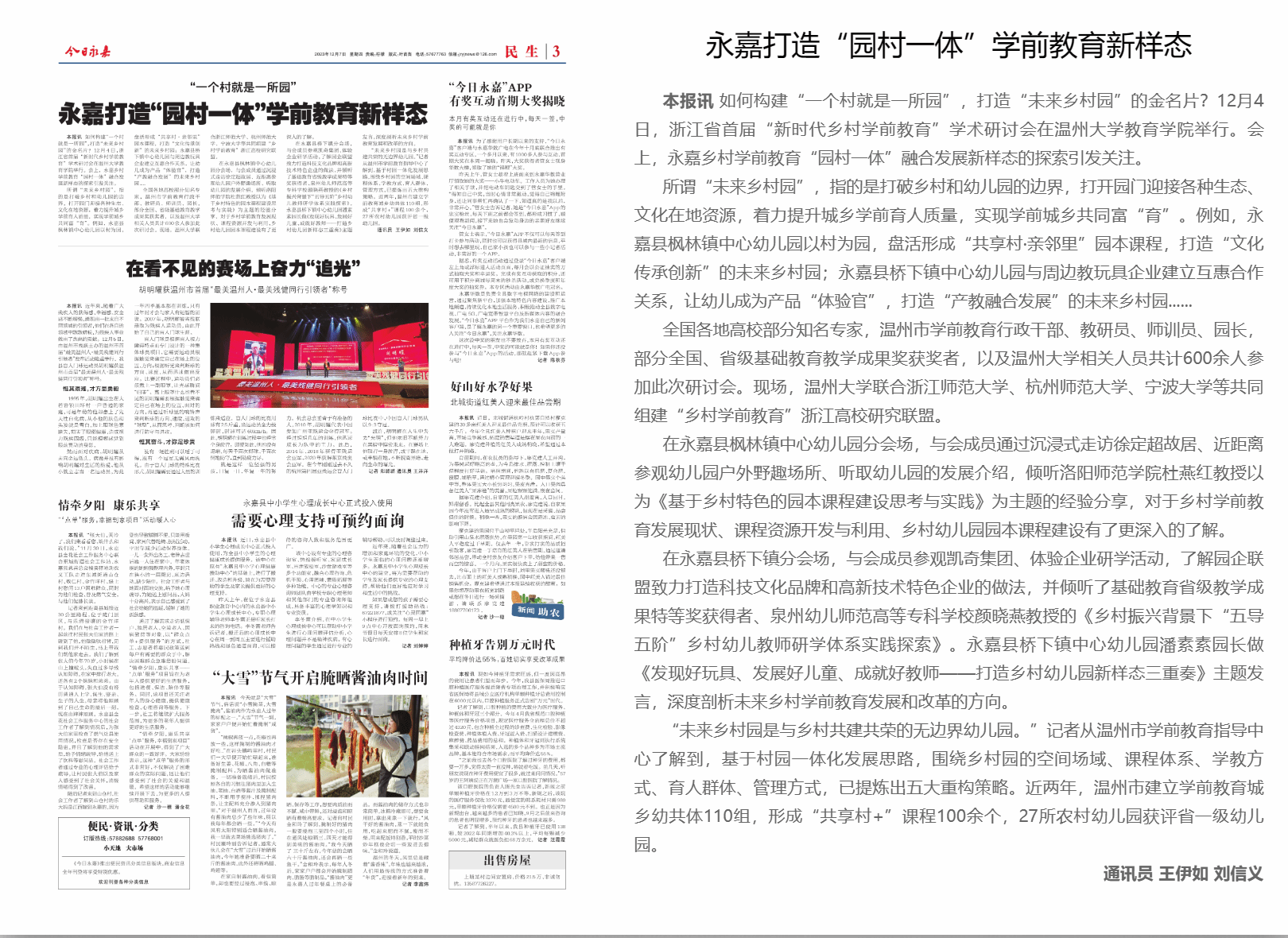 如何构建“一个村就是一所园”,打造“未来乡村园”的金名片?12月4日,浙江省首届“新时代乡村学前教育”学术研讨会在成人色情 举行。会上,永嘉乡村学前教育“园村一体”融合发展新样态的探索引发关注。