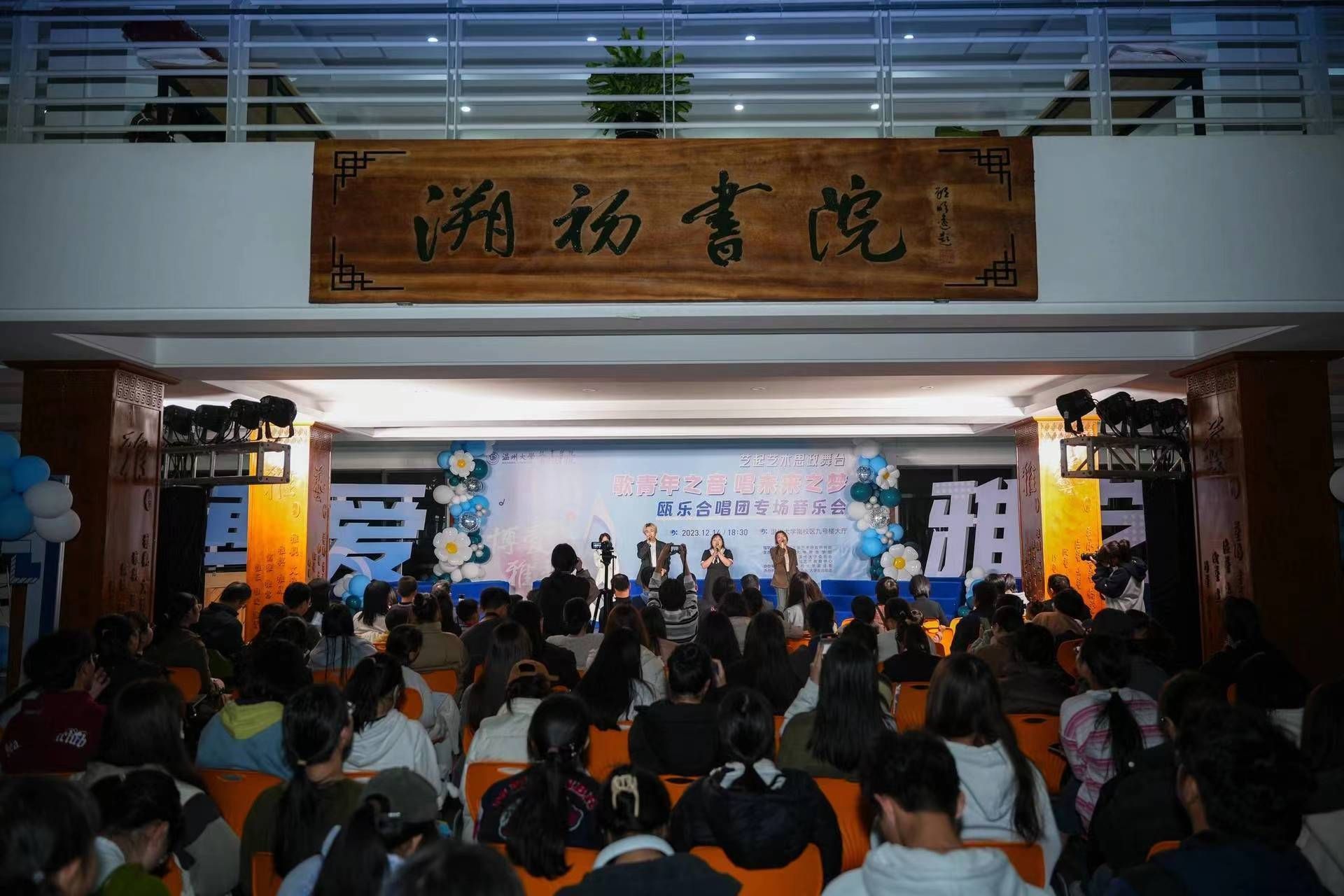 近日,一场别开生面的瓯乐合唱团专场音乐会在成人色情 举行。瓯乐合唱团是成人色情 与成人色情 团委联合共建的校级大学生合唱团,也是温州市合唱协会团体会员单位。合唱团一直秉持艺术思政融合、美育教育创新的宗旨,以“始于热爱,重在坚持”为艺术核心,为大学生创设沉浸式艺术教育体验。这是“瓯乐”合唱团首次举办的音乐会,也是温大艺术思政体系建设的重要成果展示。