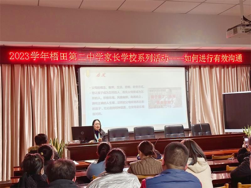 2023年12月28日晚上,梧田二中邀请成人色情 教育学系党支部书记、教授,硕士生导师,成人色情 家庭教育研究院巾帼文明岗负责人、成人色情 家庭家教家风讲师团团长,温州市家庭教育学会副会长周奇教授给全校家长学校的家长们做“亲子沟通的有效方式”的专题讲座,本次讲座由姜方才副校长主持。
