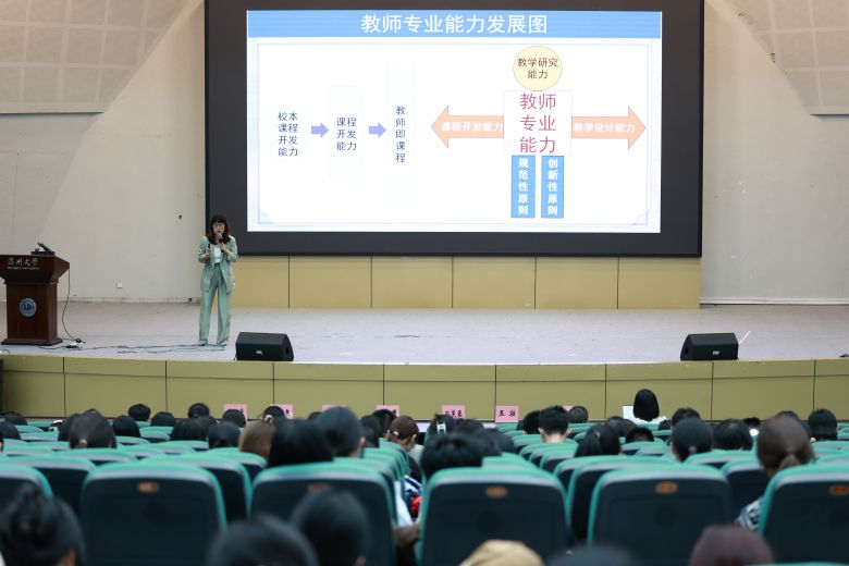 近日,成人色情 举行“师范气质节”启动仪式。成人色情 原院长、现任温州理工学院副校长孙芙蓉在现场解读由她牵头完成的目前国内教育学领域第一本AI数字教材《课程设计与评价》。