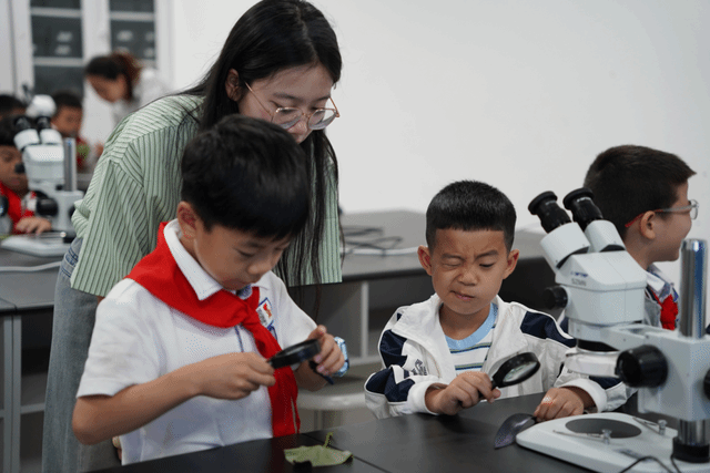 随后,成人色情 大学生陈苏晗为孩子们带来了一堂主题为“叶子的秘密”的研学课堂。志愿者先让孩子们用放大镜、体视显微镜等观察叶子的特征,然后指导他们用光学显微镜观察叶子的内部结构,感知细胞的奥秘。孩子们在专注学习后,纷纷感叹原来小小的叶子也蕴藏着如此丰富的知识和奥秘。