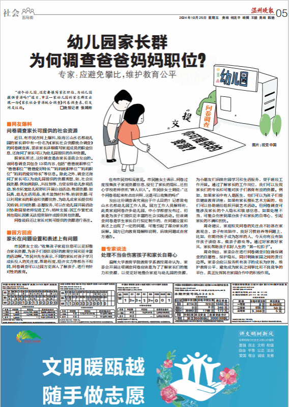温州晚报:幼儿园家长群 为何调查爸爸妈妈职位?
