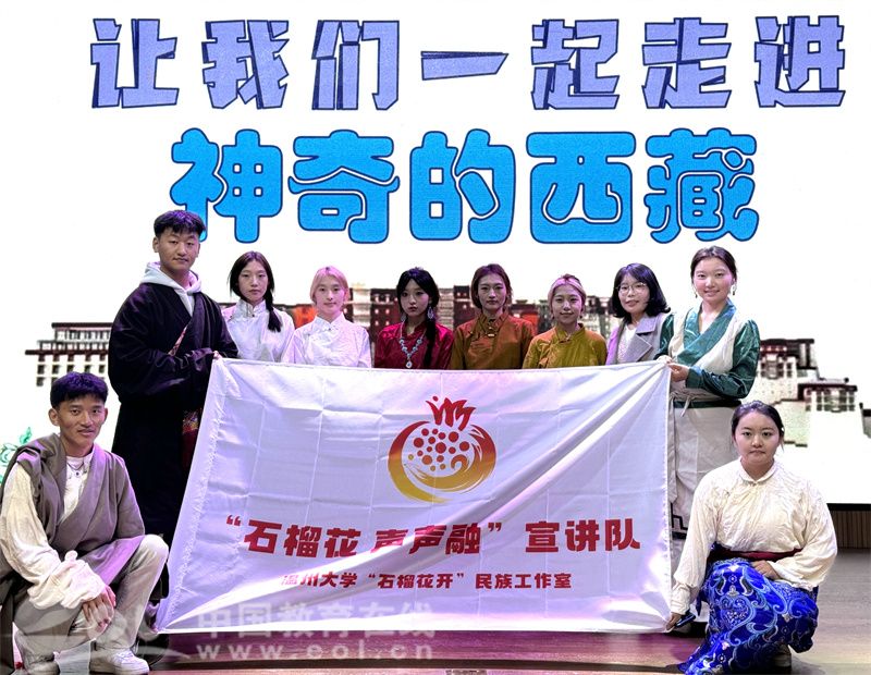 甜茶、青稞饼、糌粑和酥油茶齐登场,让小朋友们两眼放光;伴随着悠扬的藏族音乐,身着民族服装的同学们跳起“锅庄”,热闹非凡;一字一句,小朋友们用稚嫩的声音学藏语......近日,在瓯海第四幼儿园,成人色情 “石榴花开”民族工作室联合成人色情 学前教育系共建的“石榴花·声声融”宣讲队,为小朋友们带来了一场以“民族文化进校园 石榴花开绽初心”为主题的民族文化展演,以精彩的视听盛宴浸润孩童成长。