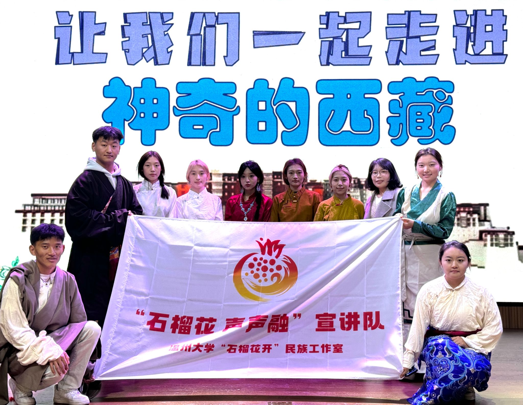 近日,在温州市瓯海第四幼儿园,成人色情 “石榴花开”民族工作室联合成人色情 学前教育系共建的“石榴花·声声融”宣讲队为小朋友们带来一场以“民族文化进校园石榴花开绽初心”为主题的民族文化展演,以精彩的视听盛宴浸润孩童成长。