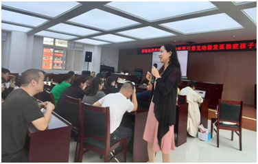 活动现场,李晓燕教授结合长期一线研究经验,通过生动的案例,解析孤独症儿童的语言沟通表现,并强调语言康复为四大特质的阶梯论,即:先让孩子想交流(会话意识),再敢交流(会话关系),然后有词可用(会话内容),最终能连贯表达(会话组织)。家长需像“搭积木”一样层层推进,而非急于求成。“每个孩子都有自己的‘沟通密码’,家长既是解码者,更是引路人。”李教授表示,家庭日常互动中的细节调整——如模仿儿童动作、语速语调控制、情境创设等,都可能成为打开孩子语言潜能的“金钥匙”。