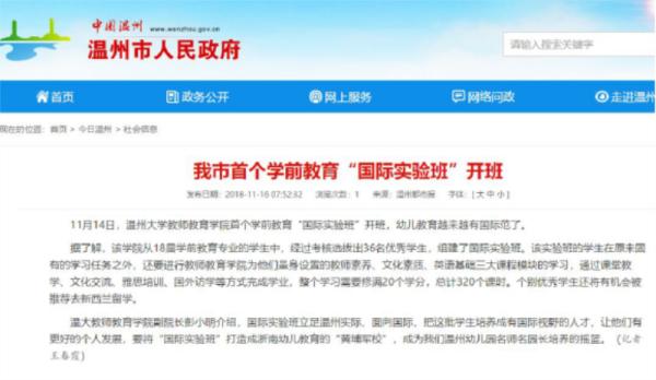 学前教育专业与美国奥罗尔罗伯茨大学(ORU)联合培养项目包括专升本、本科生、硕士研究生交换等;与新西兰奥克兰大学的教学合作及海外实习等;与新西兰幼儿教育师范学院的专升本联合培养项目;与韩国全南大学开展联合培养博士项目;并于2018年成功开办学前教育“国际实验班”。